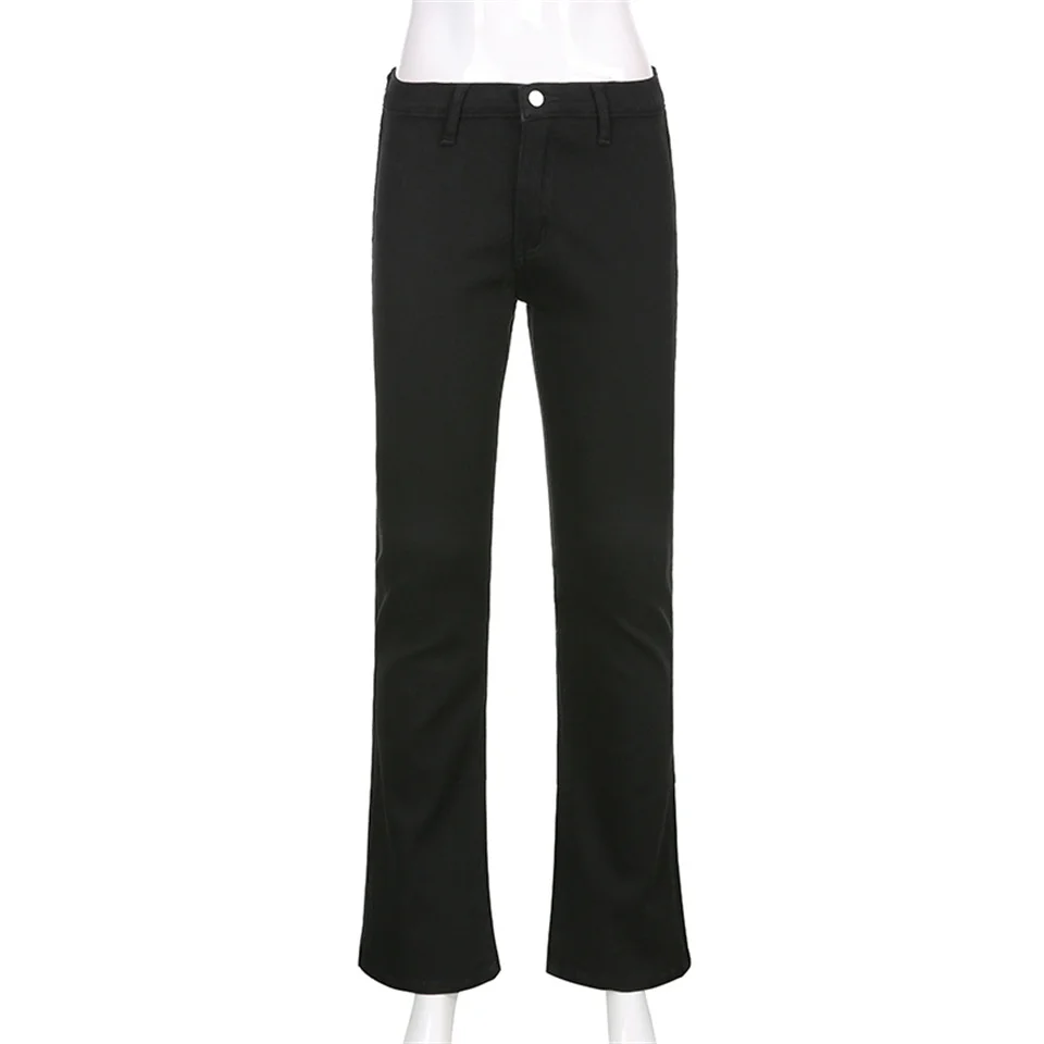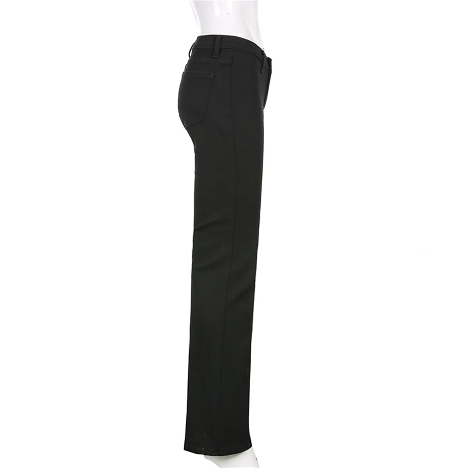 Джинсы с высокой талией, разрезом, джинсы для мам, женские длинные брюки-ботинки y2k, облегающие модные однотонные брюки, блестящие черные летние брюки
