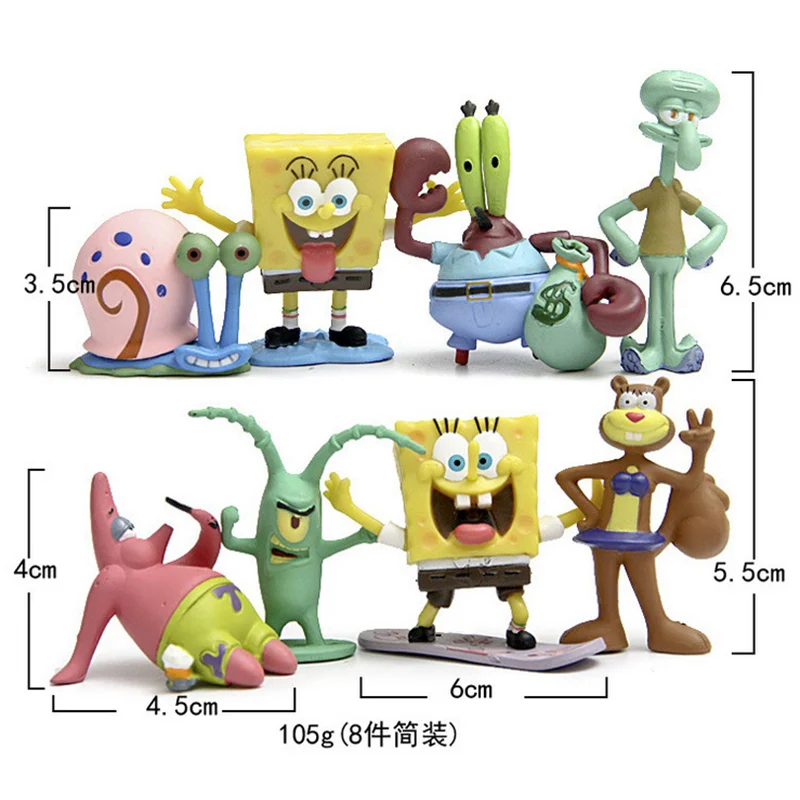 8 шт.компл. анимационные кавайные губки Bobs, фигурки Патрика, звез...