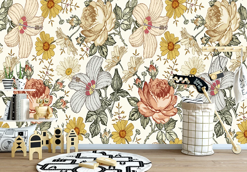 Bacaz 3D настенные фрески обои на заказ в стиле ретро с цветочным п...