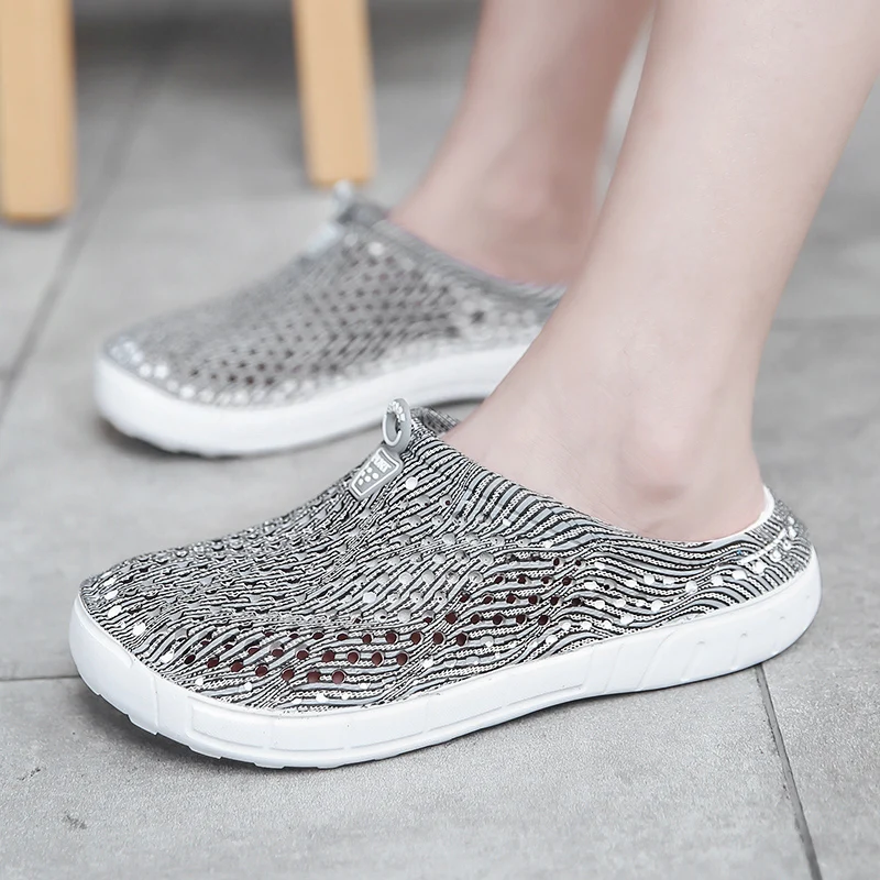 Летние женские шлепанцы больших размеров 36-41, Повседневная пляжная обувь, женская новая уличная дышащая обувь для сада, модная обувь для сада с отверстиями для сабо