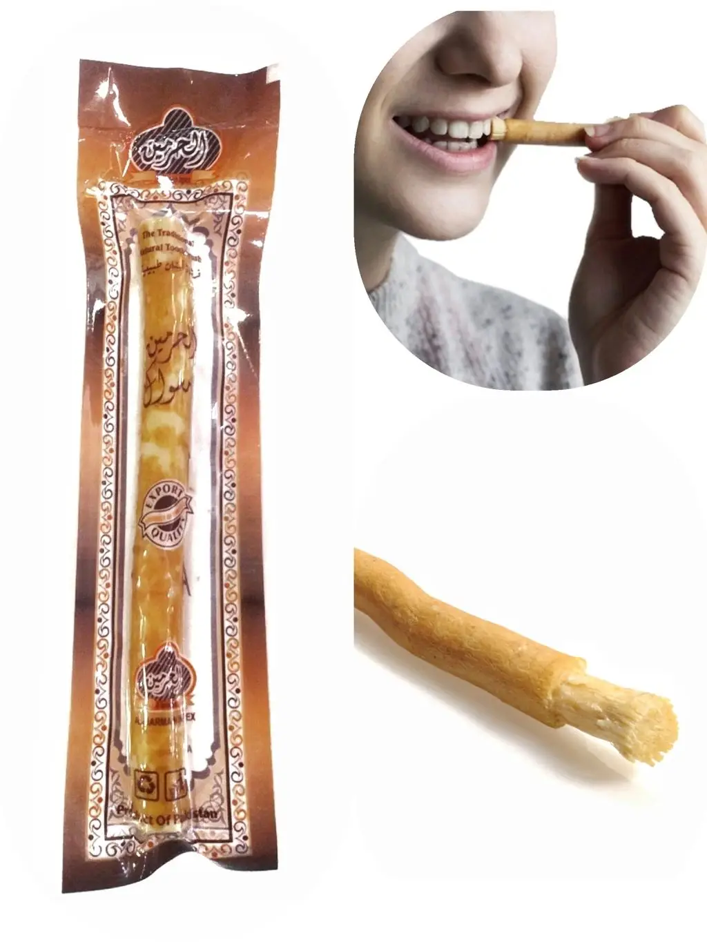 Miswak с чудесными компонентами19 активных ингредиентов необходимы для укрепления зубов.Алкалоиды: салвадорин, Триметиламин, обладают антибактериальным действием.Кремнезем: натуральный абразив, удаляет пятна.Минералы, важные для ухода за зубами: кальций, хлорид, фторид и флурид. Эти минералы напоминают структуру зубов.Сера: Антибактериальная.Витамин С: антиоксидант.Смолы: он создает защитный слой на эмали, чтобы предотвратить образование кариеса.Дубильные вещества: натуральный консервант для зубов стимулирует выработку слюны во рту.Saponins: грязевые растворители.Флавоноиды: антибактериальные.Эфирные масла: они дают мягкий вкус и запах, поддерживают производство слюны и помогают облегчить газ, который является причиной запаха, вызванного бактериями во рту.Подарок природы для гигиены полости рта.Самая старая зубная щетка в истории.Miswak, наряду с другими формами жевательных палочек, считается первой документированной формой гигиены зубов. Он по-прежнему широко используется на Ближнем Востоке, в Северной Африке и в Центральной и Юго-Восточной Азии и, возможно, является самым надежным секретом древнего мира.В исламских культах мисвак считается «сунной», ссылаясь на ежедневную практика пророк Мохаммада (PBUH), который рекомендовал его в рамках ежедневного режима здоровья.Как мы можем предоставить MISVAK для использования? Прежде всего, вам нужно иметь misvak. Возьмите готовый misvak и извлеките его из сумки. При покупке misvak убедитесь, что он не слишком сухой и свежий, потому что волокна misvak с сухим телом и тонкой структурой сухие. Замочите кончик мисвака в воде в течение короткого времени, чтобы он выглядел как кисть. Если он мягкий и свежий, это не будет необходимо. Снимите кончик миски примерно на 1-2 см. Открыв кончик рукой, вы можете сделать его готовым к использованию. Как использовать в зубах MISVAK? Вы можете очистить его, аккуратно протирая его на зубах. Его разный вкус может показаться удивительным для вас в первый раз, но вы не сможете вводить в заблуждение с течением времени. При трении зубов, вы должны очистить их поперечно, не как верхние зубцы. После использования на некоторое время, вы можете быть удивлены тем, как ваши зубы и небо очищены и усилены так сильно.Расчетное время доставки в качестве справки.Бесплатная доставка не означает, что вам не придется платить дополнительные таможенные пошлины.