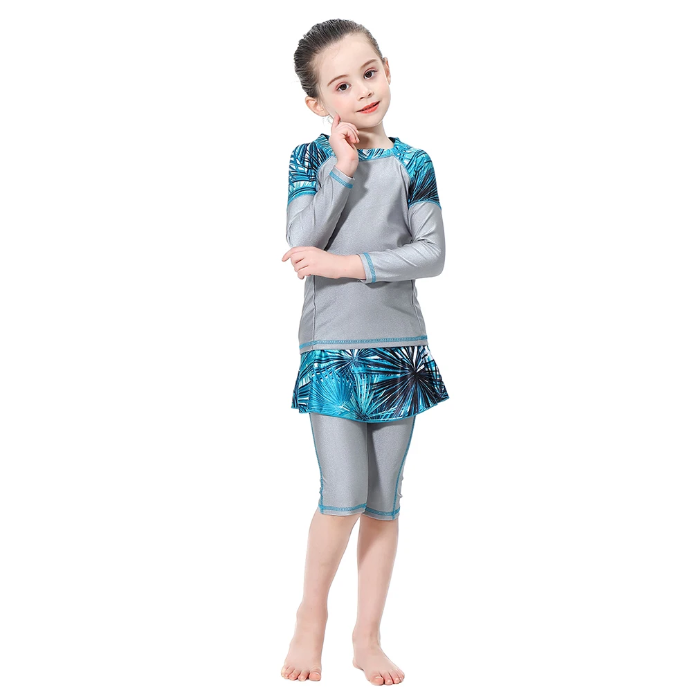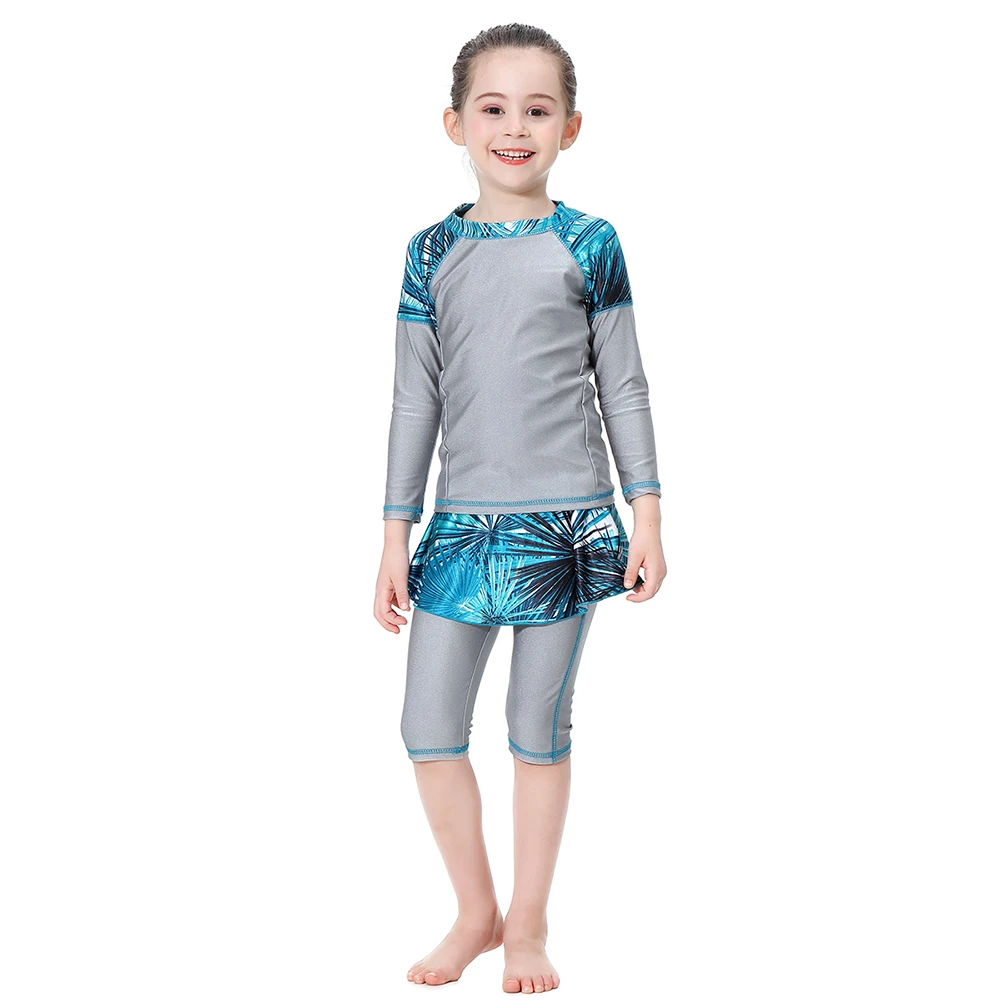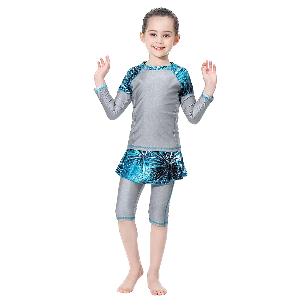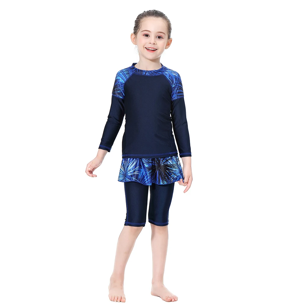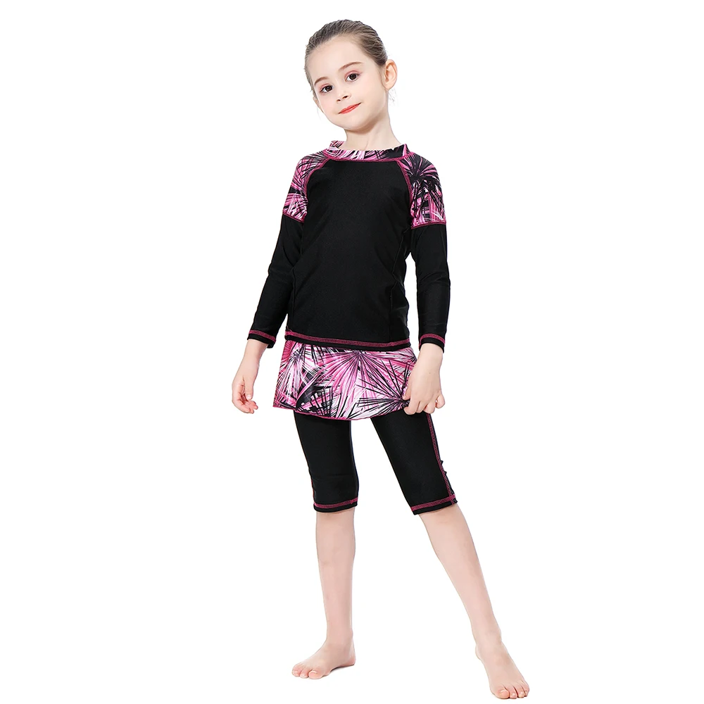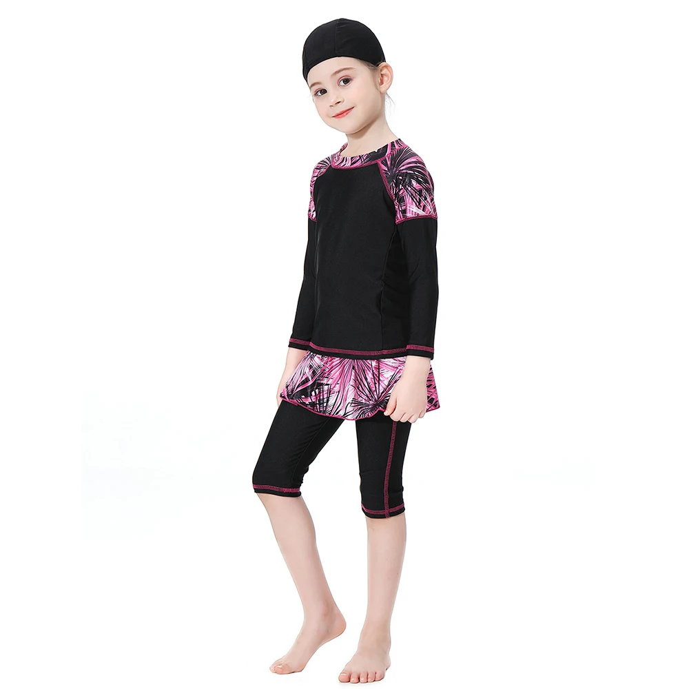 Купальник для девочек с длинным рукавом, мусульманский модный скромный купальный костюм, мусульманский цветочный принт, Буркини, черный