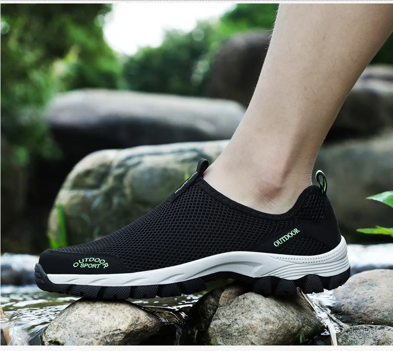 Мужские кроссовки без шнуровки, дышащие сетчатые лоферы, удобная повседневная обувь для тренировок, плоская подошва, водонепроницаемые, размеры 39-49, лето