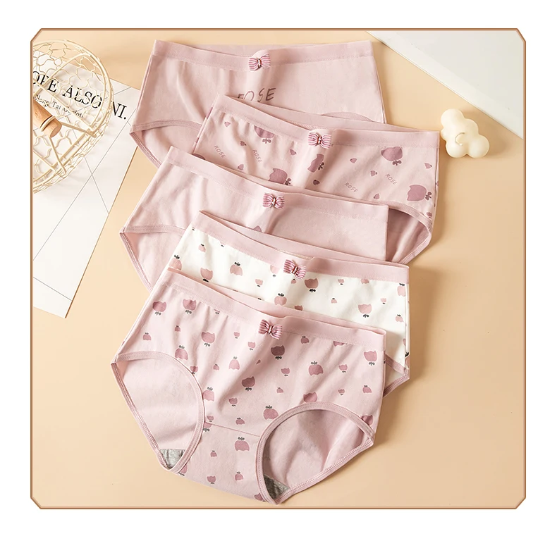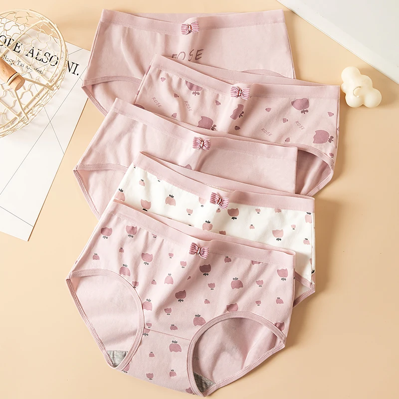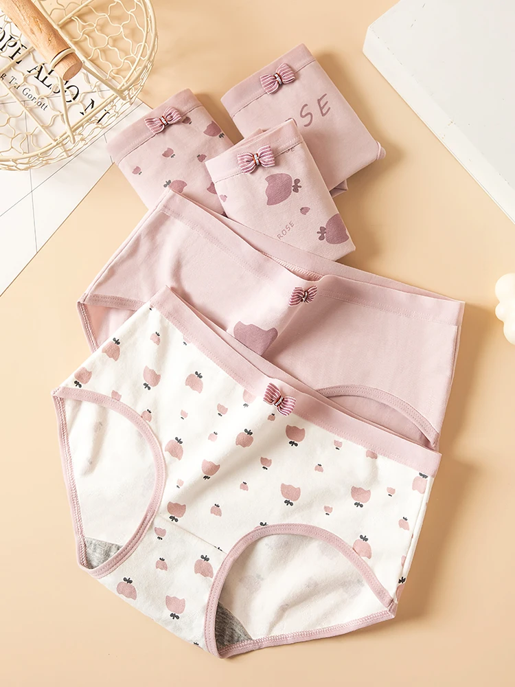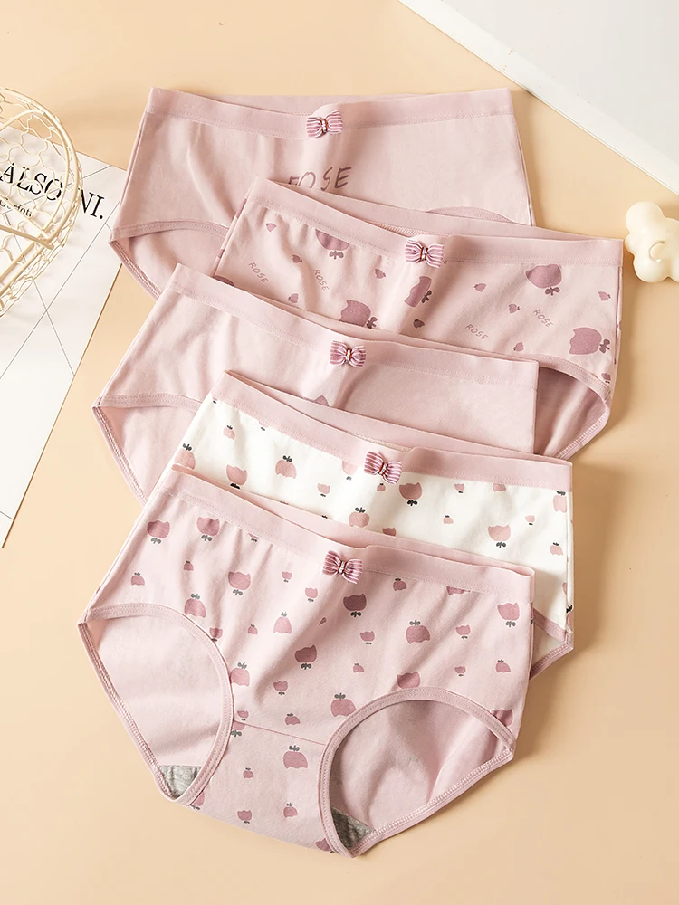 5 шт.компл., женские трусики, хлопок, дышащее, модное нижнее белье, бесшовные, с милым бантом, с принтом, трусы для молодых девушек, сексуальное женское белье
