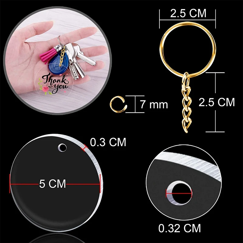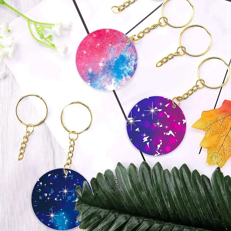 Заготовки для брелоков из акрила, заготовки для ключей с кольцами для ключей, круглые акриловые заготовки 2 дюйма с отверстием для поделок сделай сам, 90 шт.