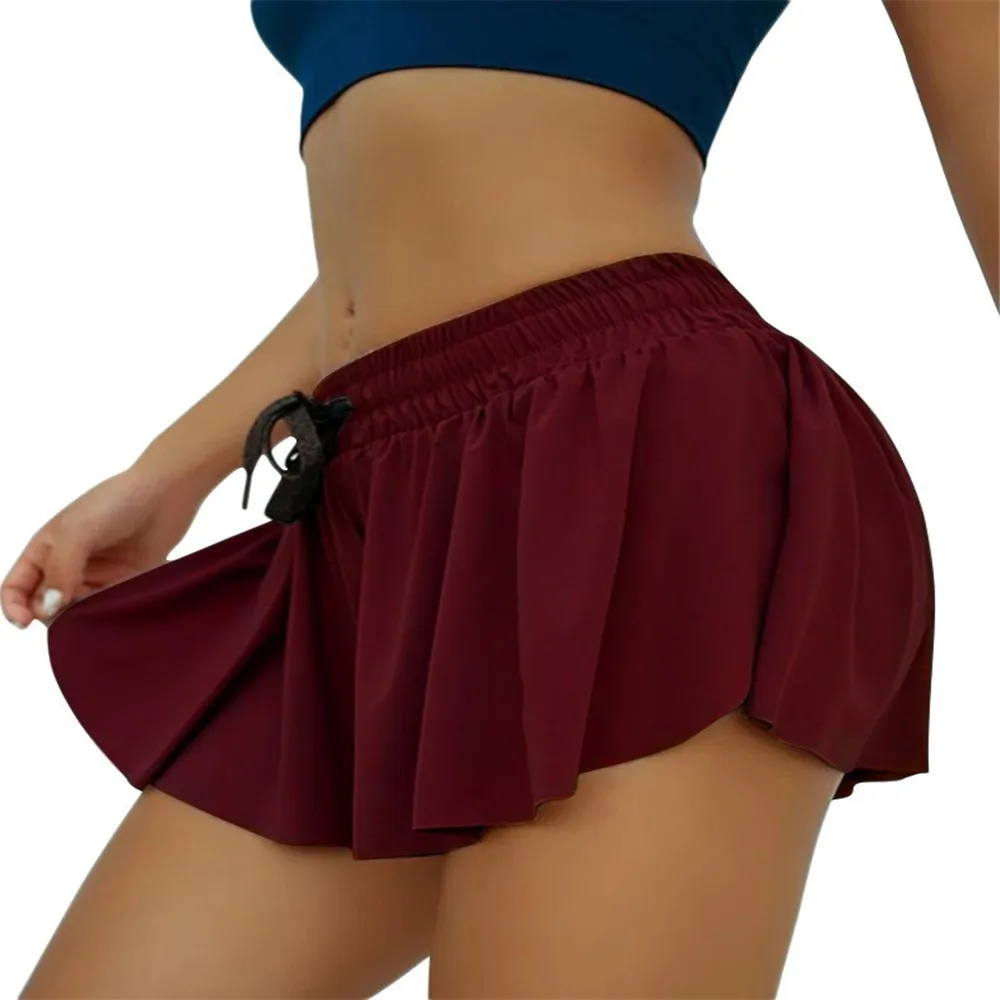 Спортивные женские шорты для бега, юбка с высокой талией, новые шорты, сетчатые двухслойные шорты с принтом в стиле пэчворк, шорты для фитнеса, спортивные короткие юбки