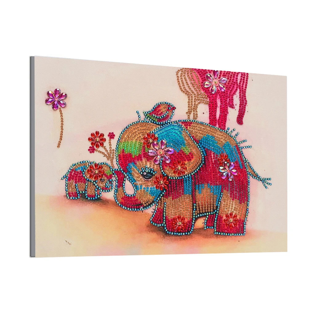 Алмазная живопись особой формы, большой и маленький слон, сделай са...
