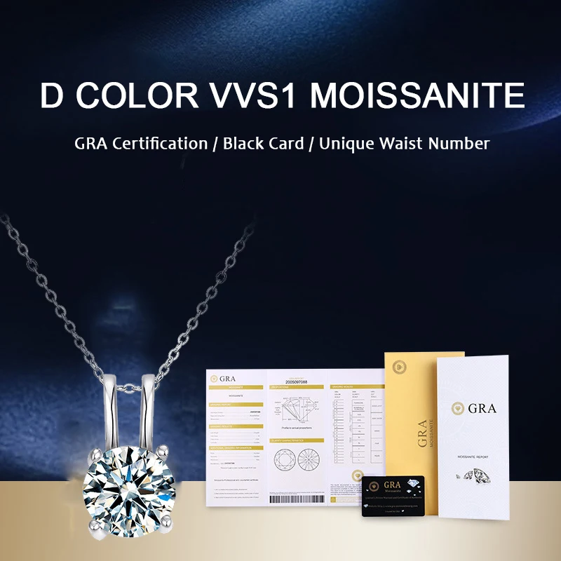 Ожерелье с подвеской GRA Moissanite 1 карат 2 карата D Color VVS1, ожерелье из стерлингового серебра 925 пробы с бриллиантами, подарок для женщин и девушек, Изящные Ювелирные украшения