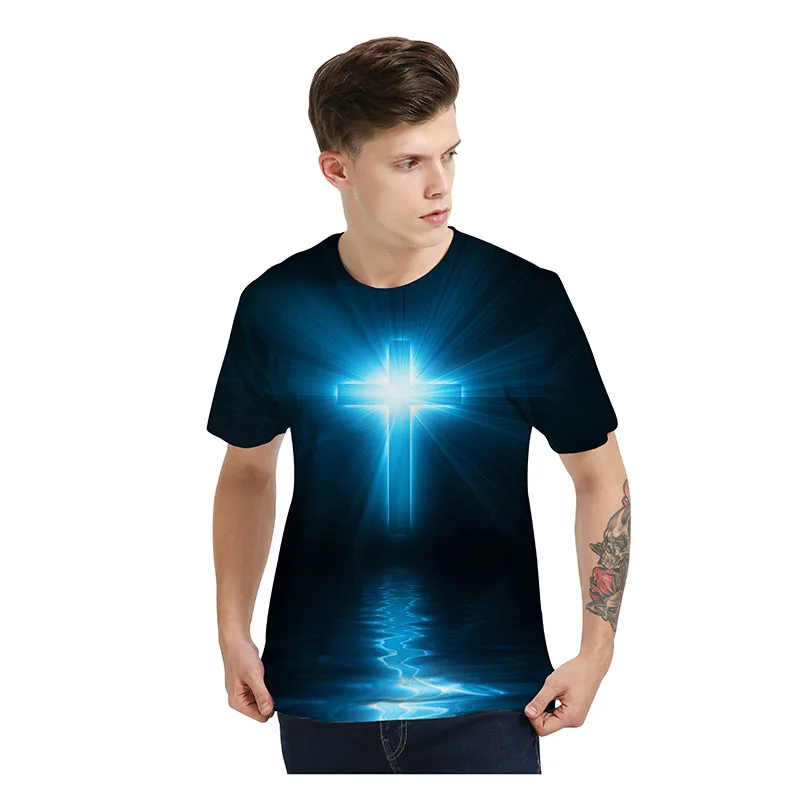 Футболка мужская с круглым вырезом, модная повседневная тенниска с 3D-принтом Креста, с изображением Иисуса, майка в христианском стиле с короткими рукавами, лето 2021