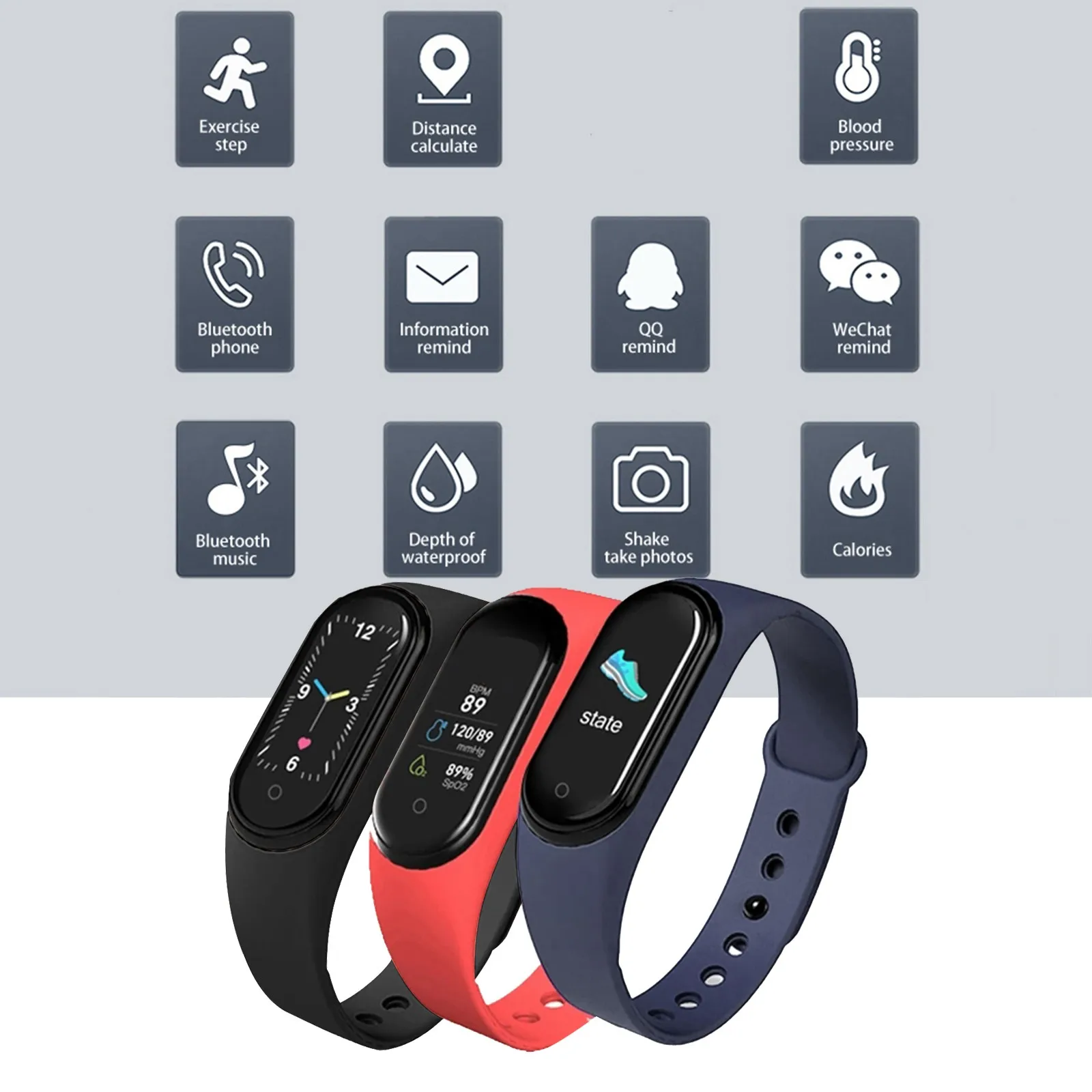 Смарт-браслет M5 с измерением пульса и артериального давления, водонепроницаемые умные часы со стандартным фитнес-трекером