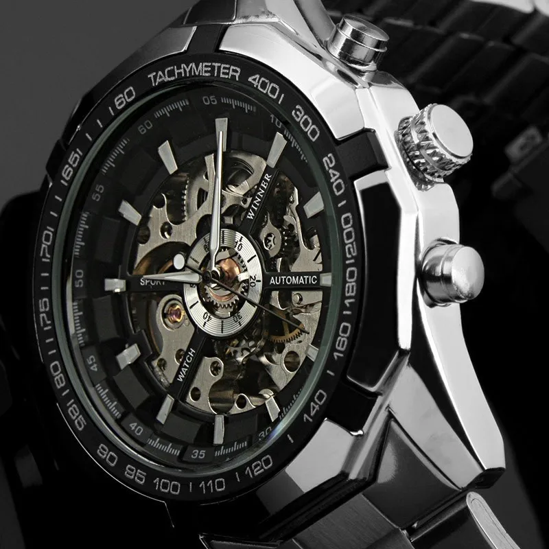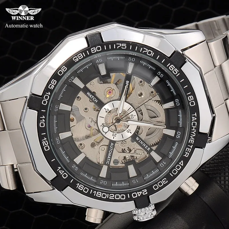 Горячая Победитель Элитный бренд Роскошные спортивные Для мужчин автоматические механические мужские часы в стиле милитари Для мужчин полный Сталь нержавеющая полоса класса люкс