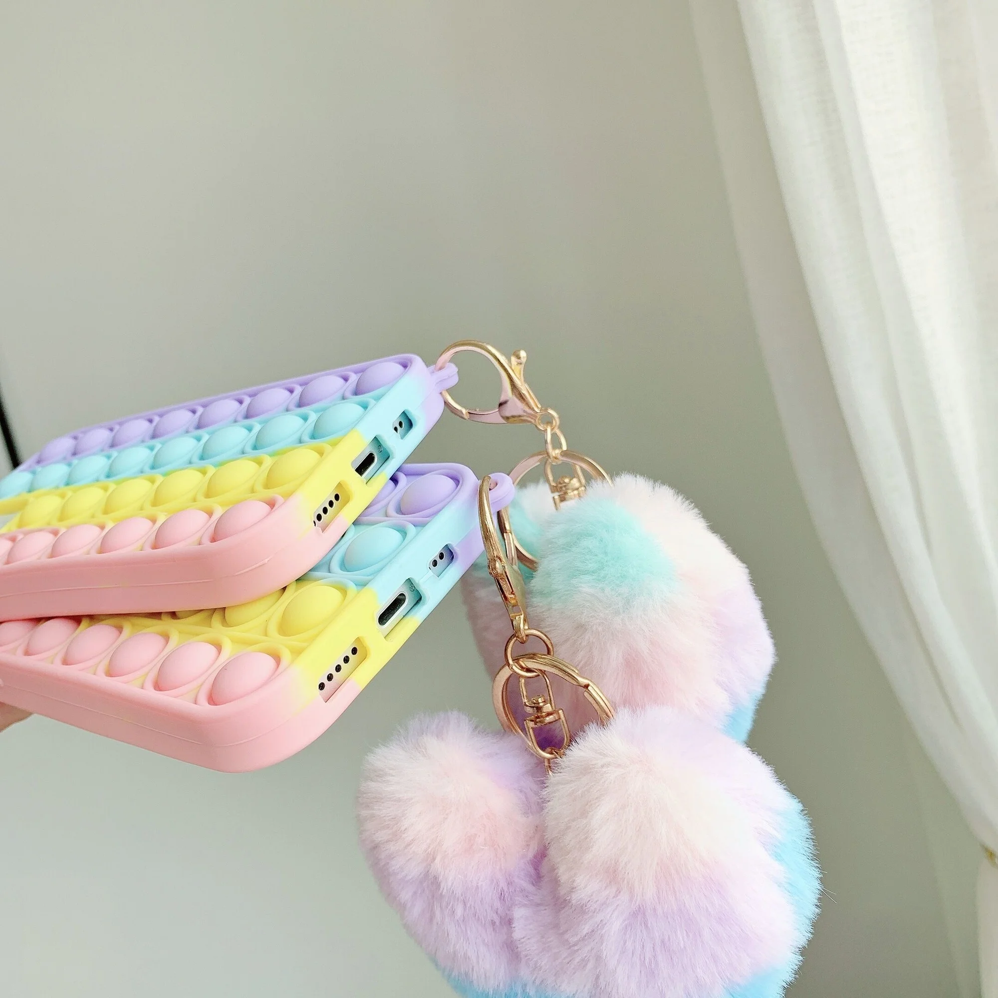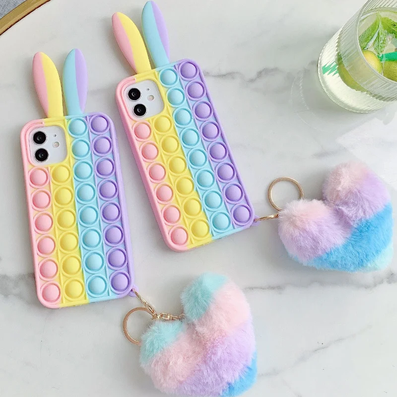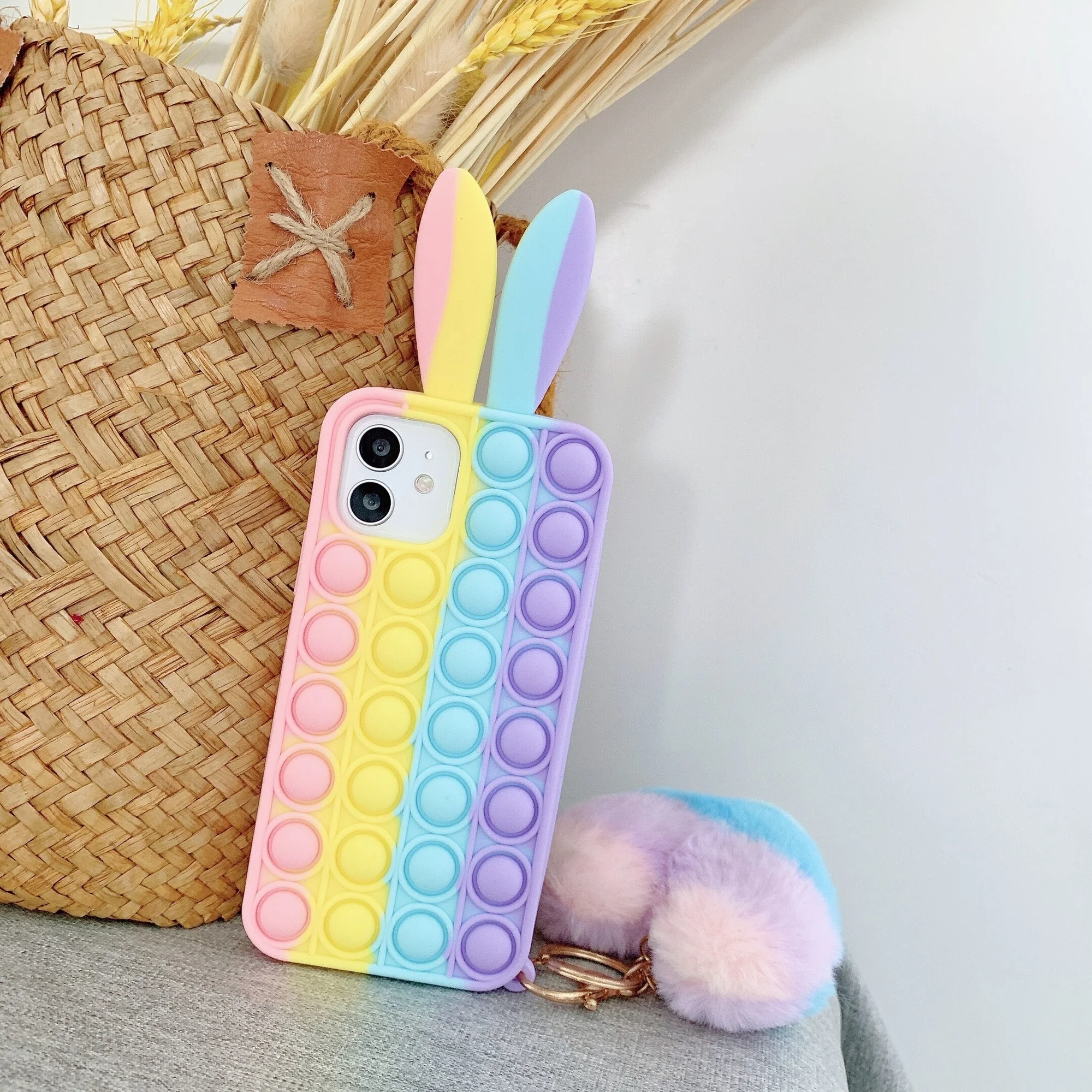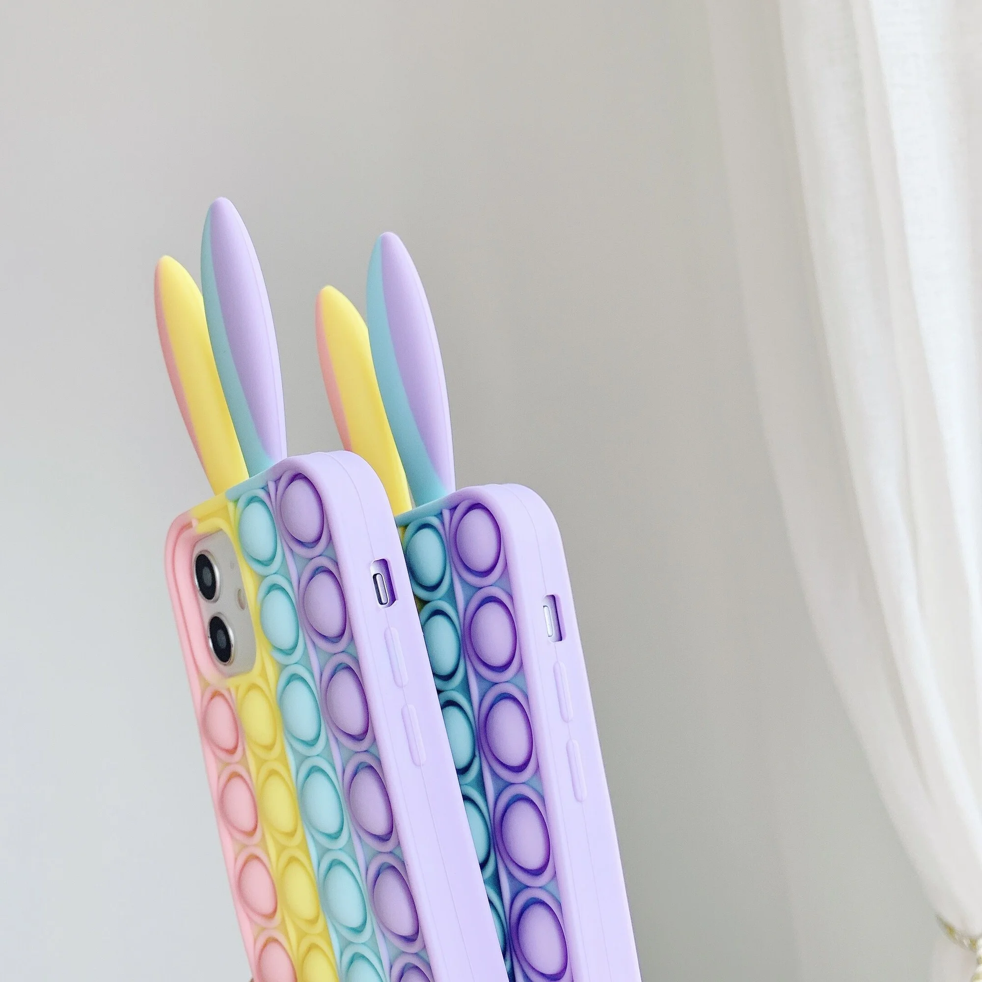 Чехол Regenboog Kleurrijke 3D Konijn Lange Oor для iPhone 12 Mini 11 Pro Max Reliver для снятия стресса Pop Fidget Speelgoed push Het Bubble Cover