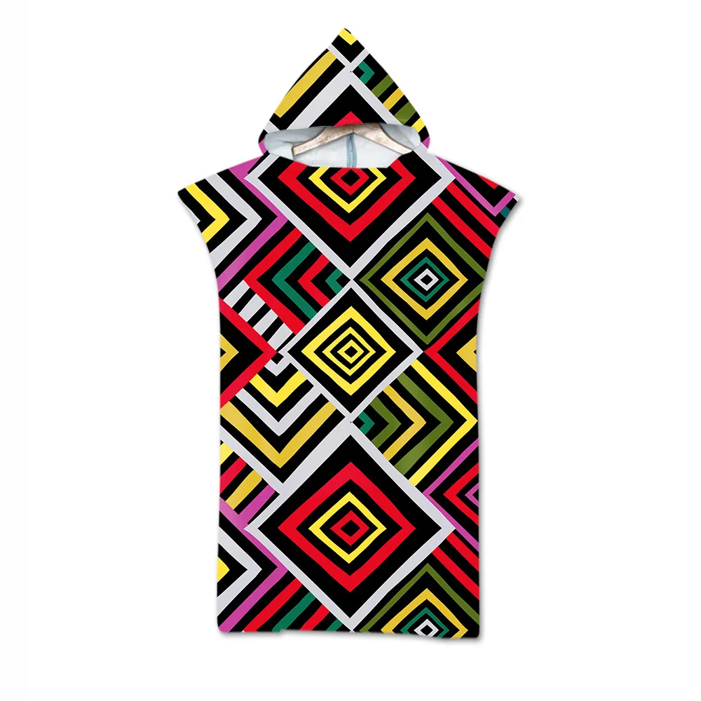 Пляжное полотенце для взрослых, пончо с капюшоном, быстросохнущее абсорбирующее банное полотенце из микрофибры с геометрическим принтом, пляжная одежда