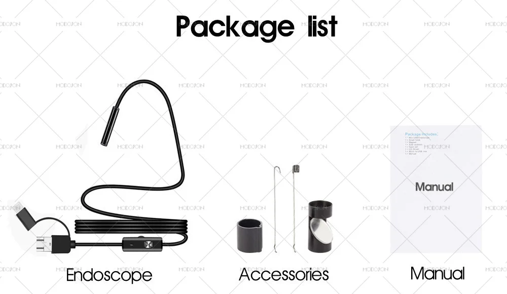 1 * эндоскоп1 * зеркало1 * маленький крючок1 * магнит1 * Руководство пользователя