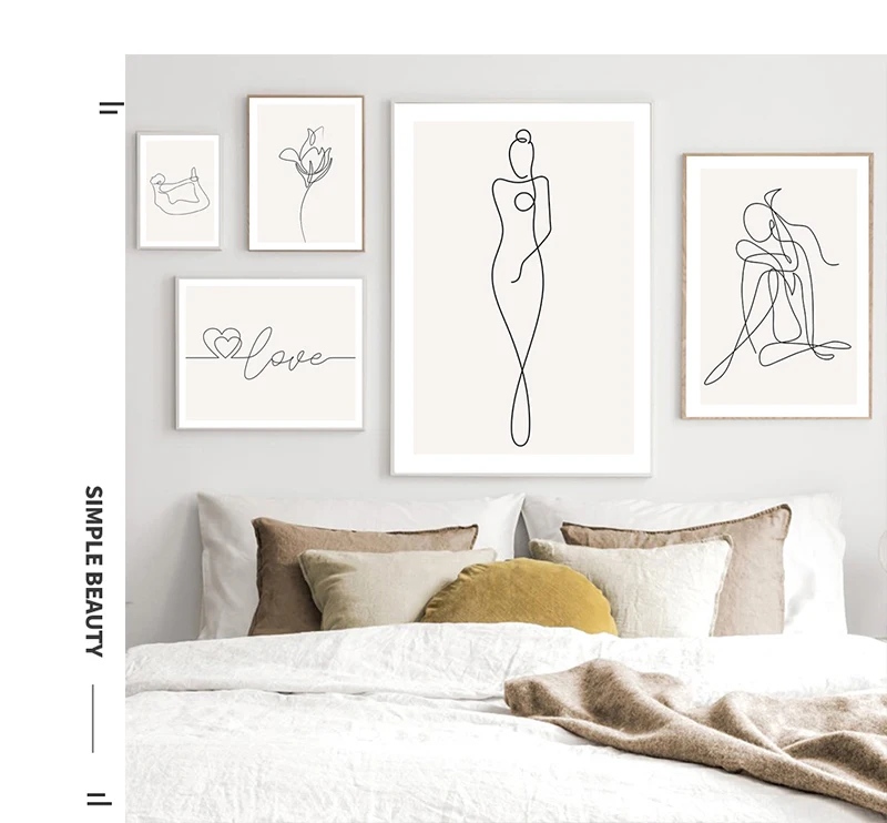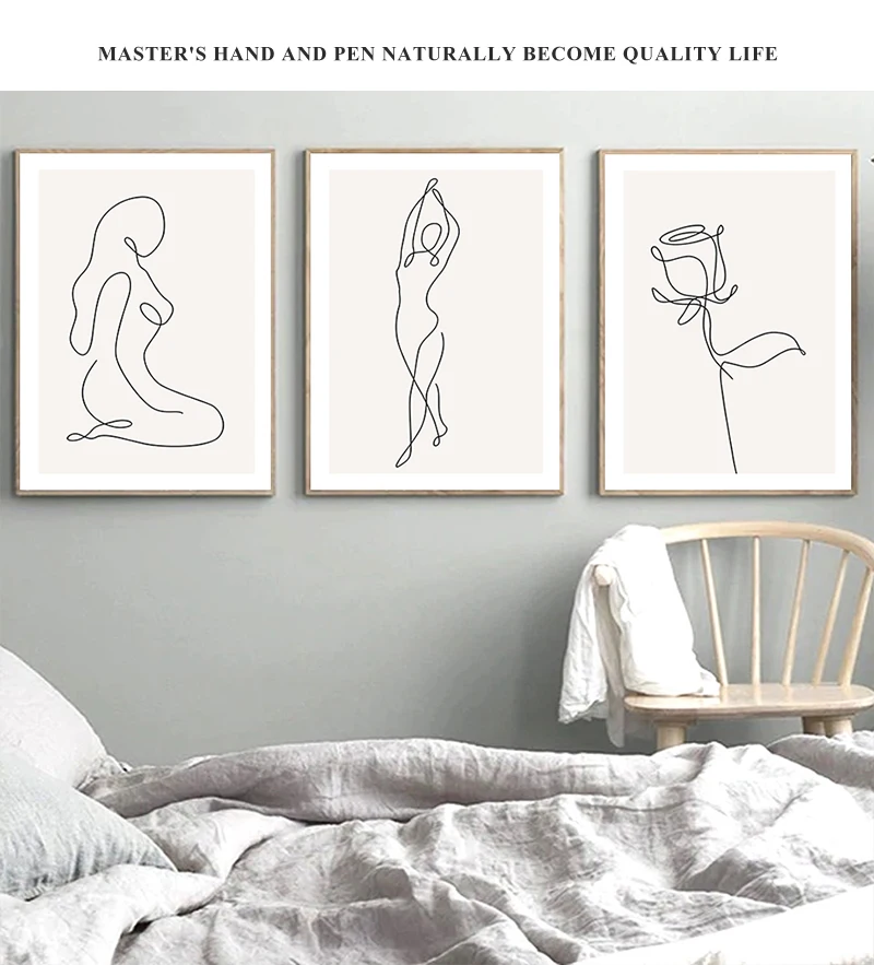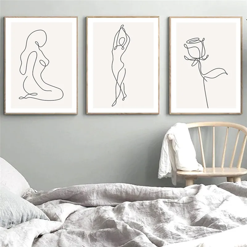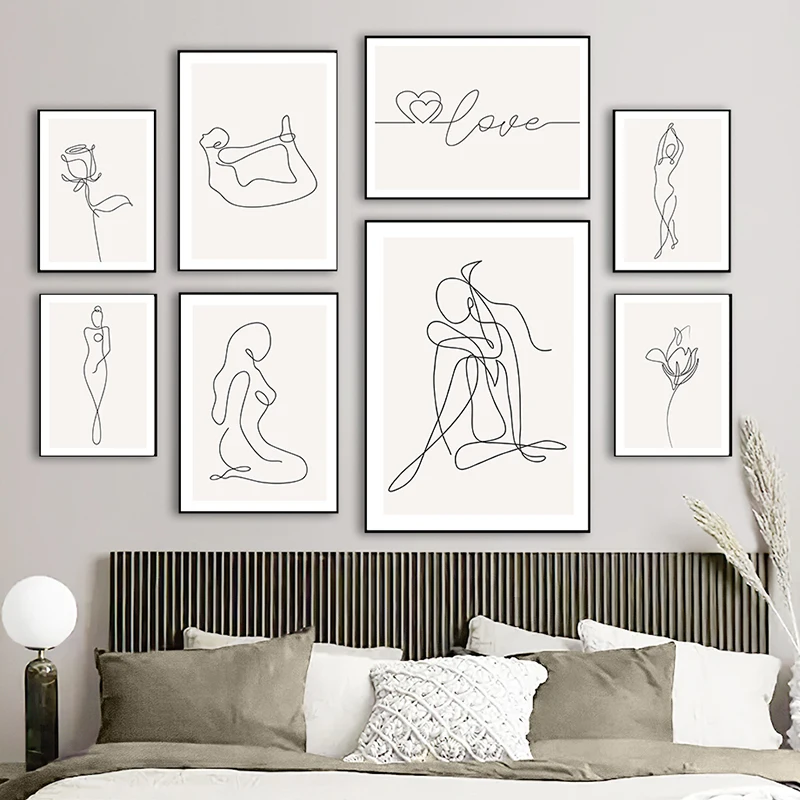 Линейная фигурка, Декор, Картина на холсте, абстрактная Минималистичная Настенная картина, плакат, скандинавский принт, современный плакат для домашнего декора