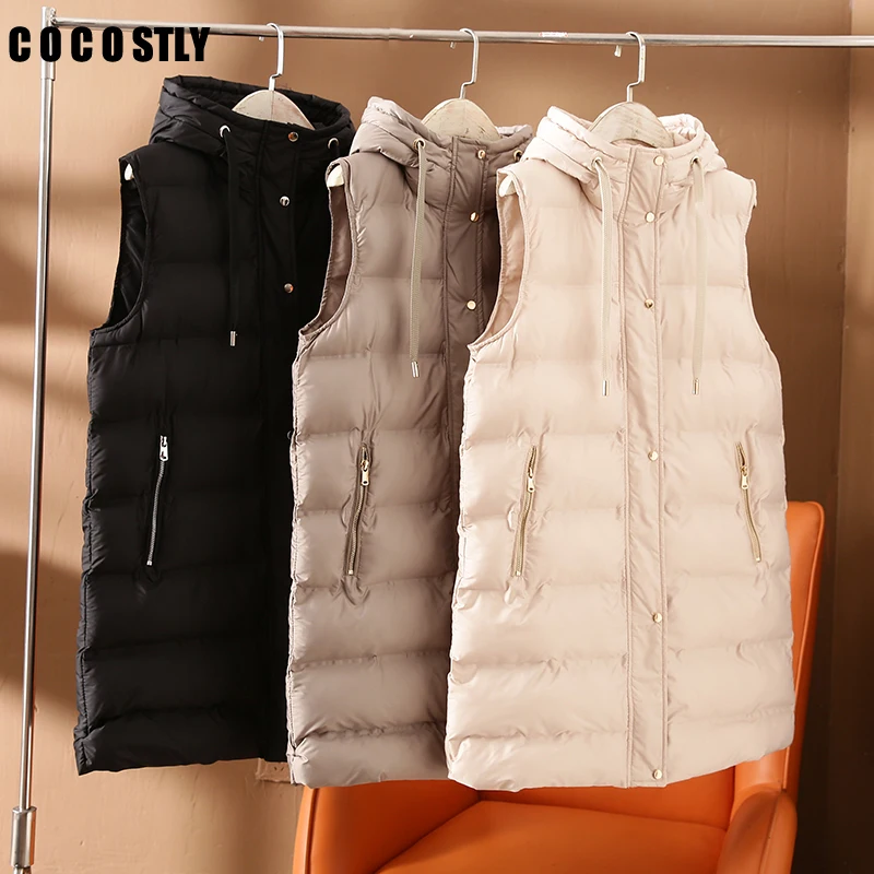 Осенняя Женская жилетка 2022, модная женская куртка с карманами, пальто с капюшоном, винтажная женская верхняя одежда без рукавов, шикарные топы