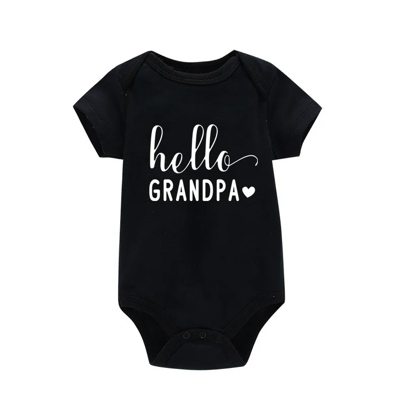 Здравствуйте дедушкабабушка Детские объявление Одежда для новорожденных; Футболка для малышей с коротким рукавом и Черный боди из хлопка на каждый день Детский костюм для игр
