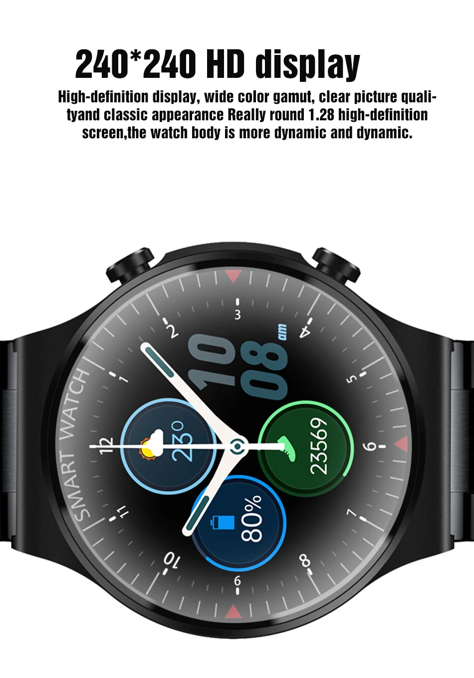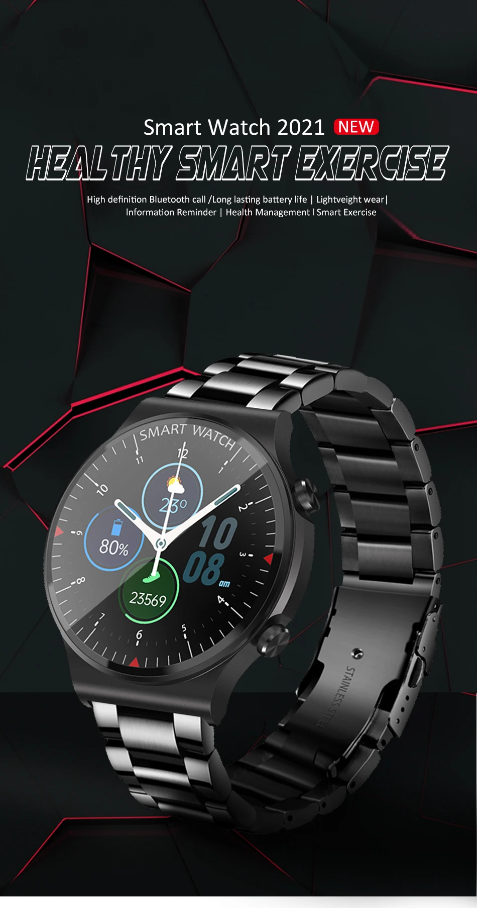 Смарт-часы мужские, водонепроницаемые, со стальным ремешком, пульсометром, тонометром