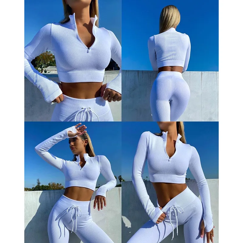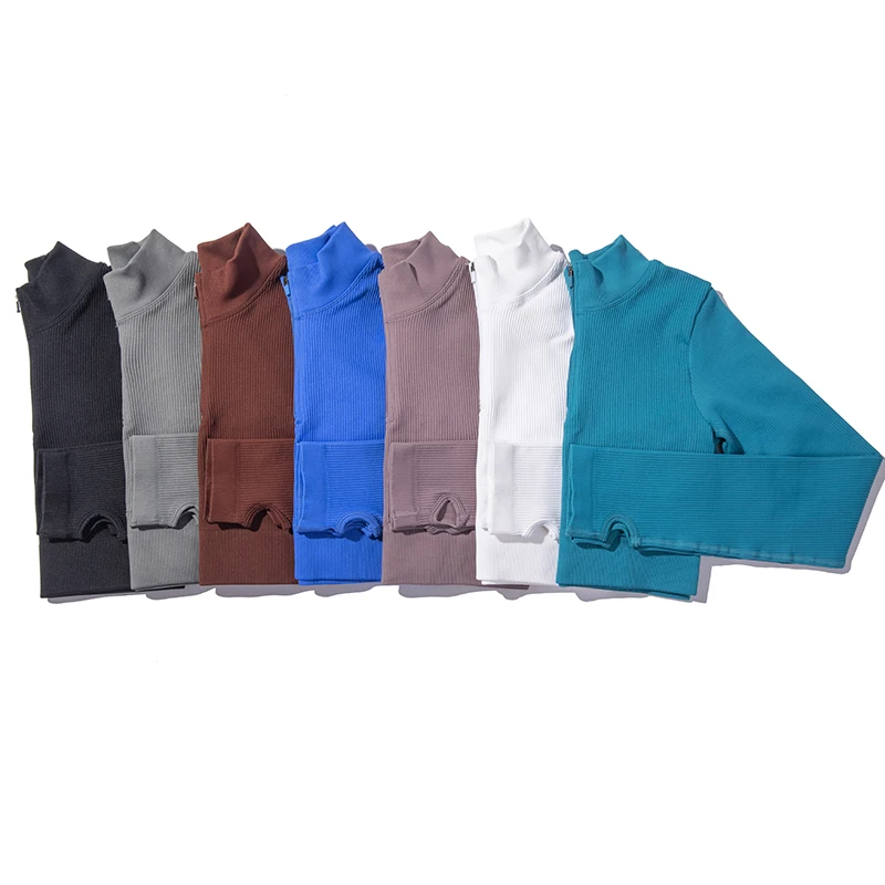 Женский комплект для йоги из двух предметов, бесшовный укороченный Топ с длинным рукавом и леггинсы, тренировочная одежда, одежда для фитнеса, спортивный костюм, комплекты для спортзала