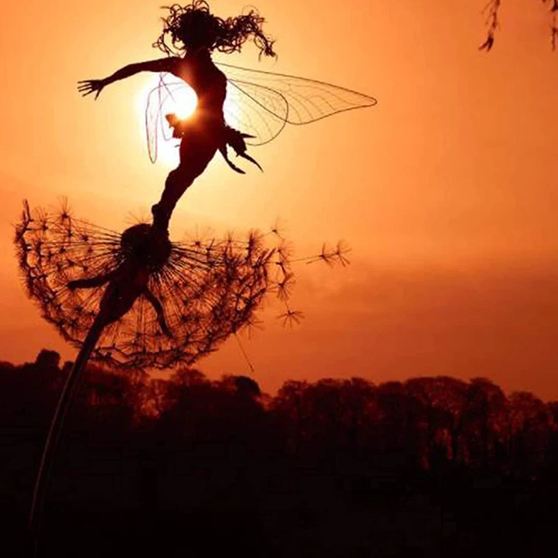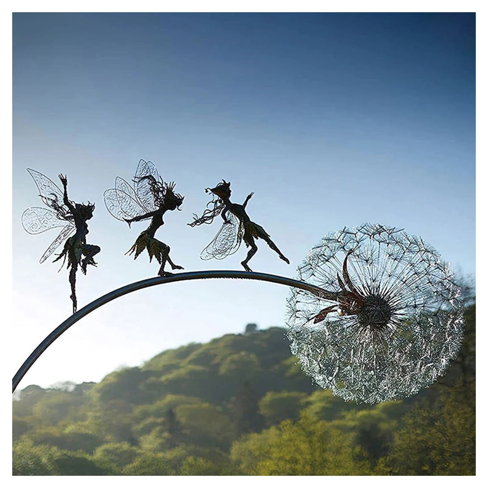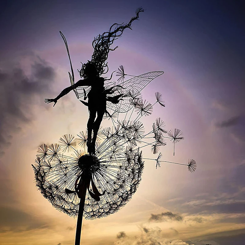 Сказочное украшение 2D для сада, сказочное украшение на колышке с одуванчиком, металлическое художественное украшение с эльфом для улицы STSF666