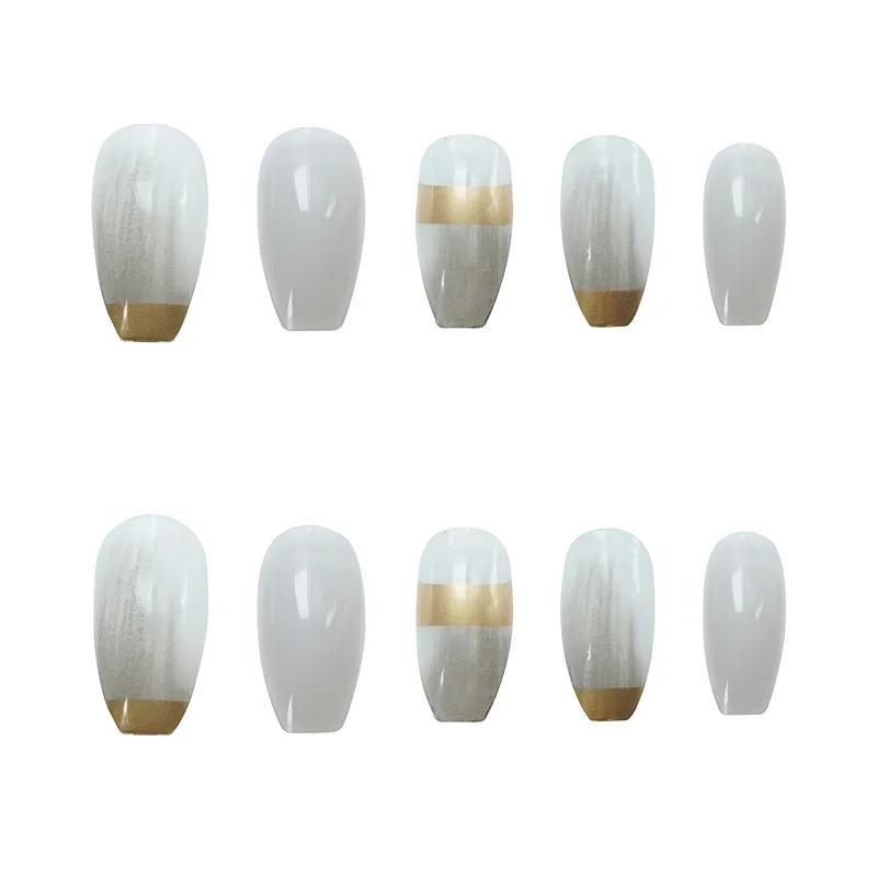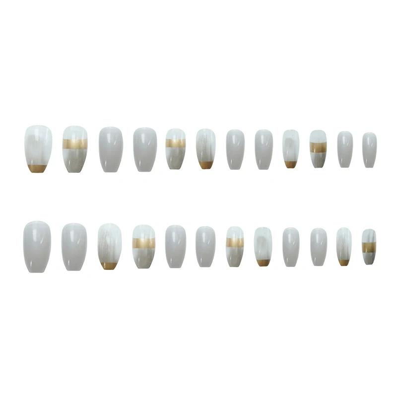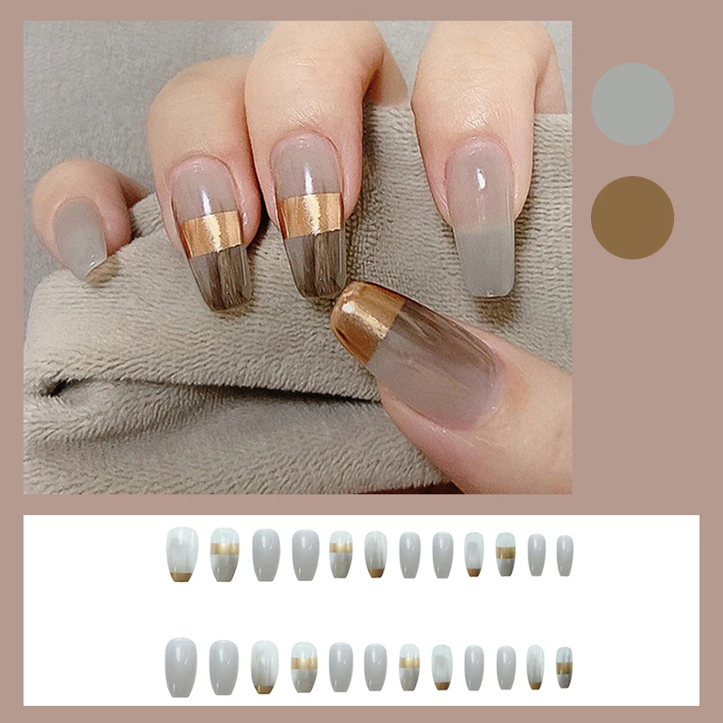 Накладные ногти средней длины, 24 шт., с клеем, золотисто-серая сетка, наклейки для дизайна ногтей, накладные ногти