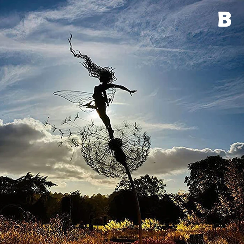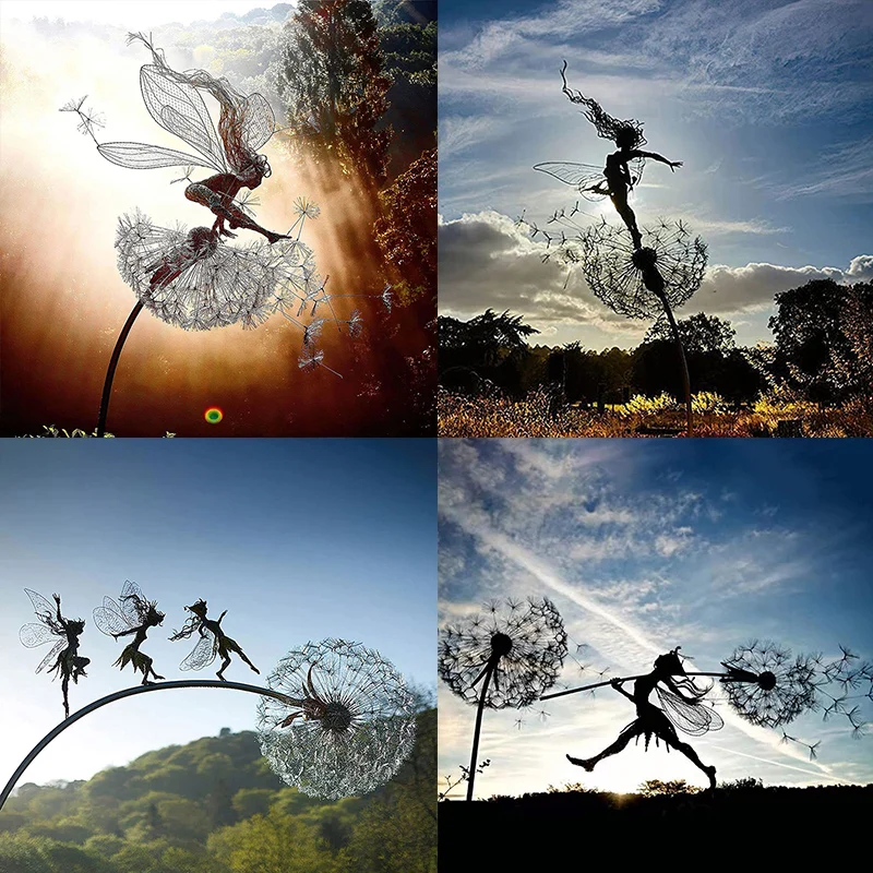 Сказочное украшение 2d для сада, сказочное украшение на колышке с одуванчиком, металлическое художественное украшение с эльфом для улицы