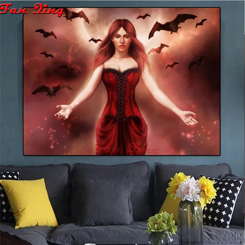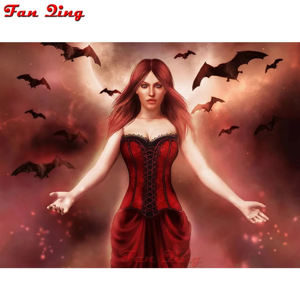 Алмазная мозаика "летучая мышь и вампир" 5d, сделай сам, алмазная живопись, рукоделие, вышивка крестиком, полная выкладка, стразы, Готическая женщина,