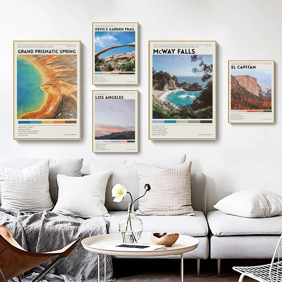 Los Angeles Mcway Falls Cadillac Mountain настенная Картина на холсте скандинавские постеры и принты настенные картины для декора гостиной