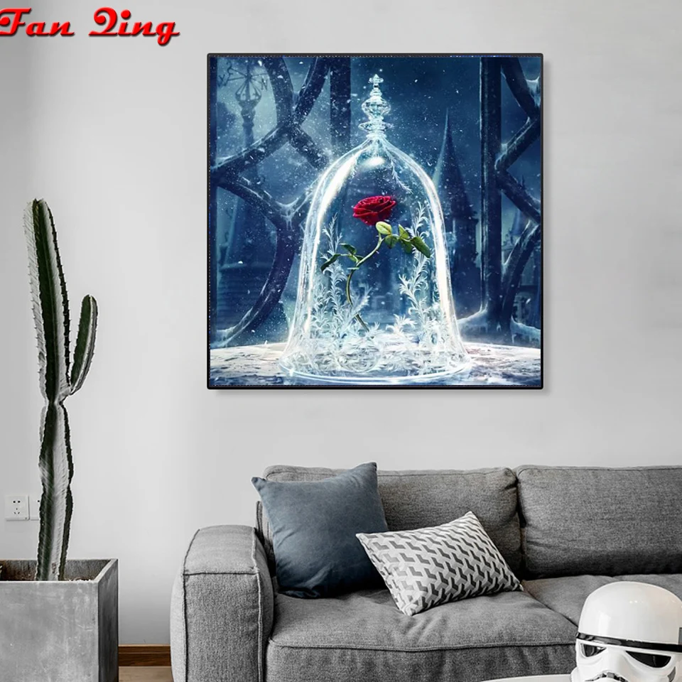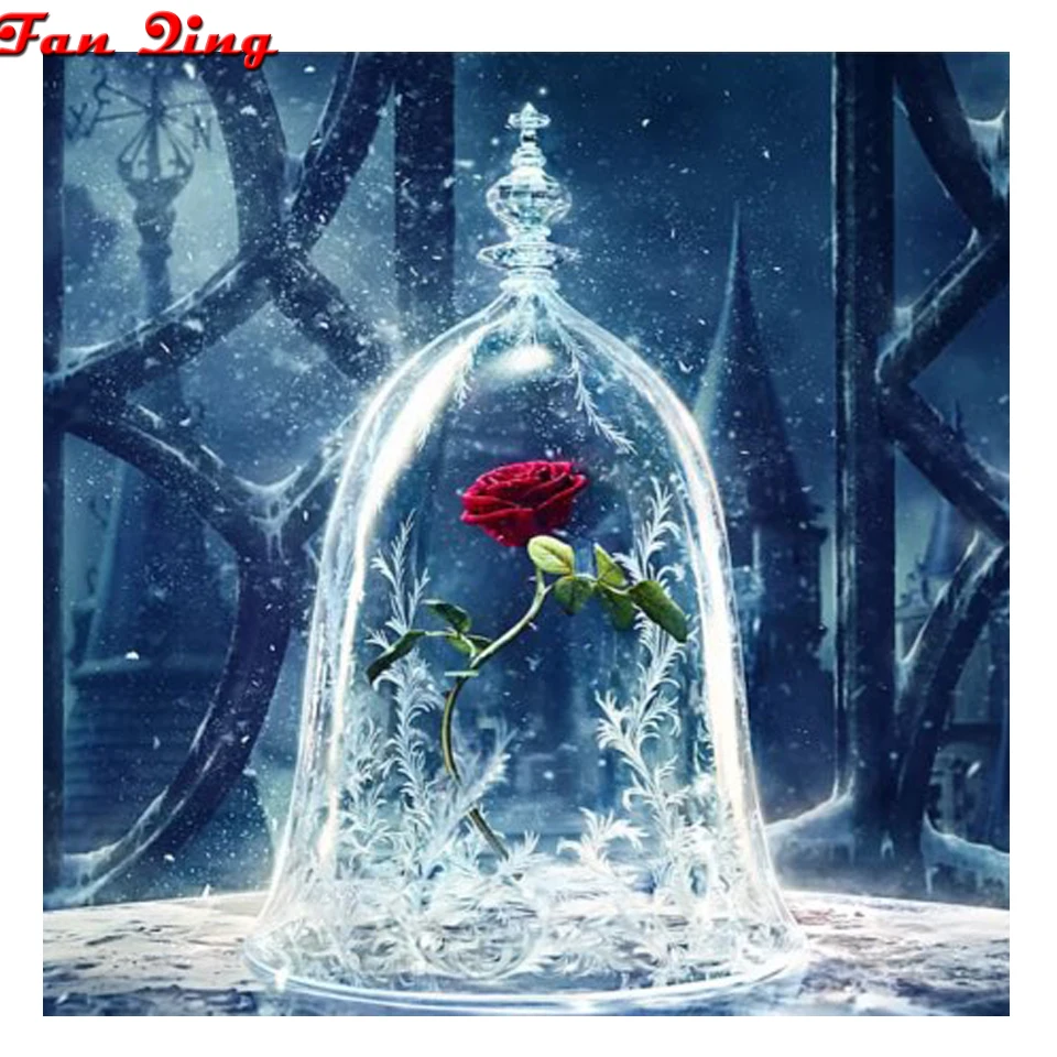 5D алмазная картина DIY квадратная круглая алмазная Роза стеклянная бутылка для льда картина вышивка набор пейзаж украшение для дома ручная работа
