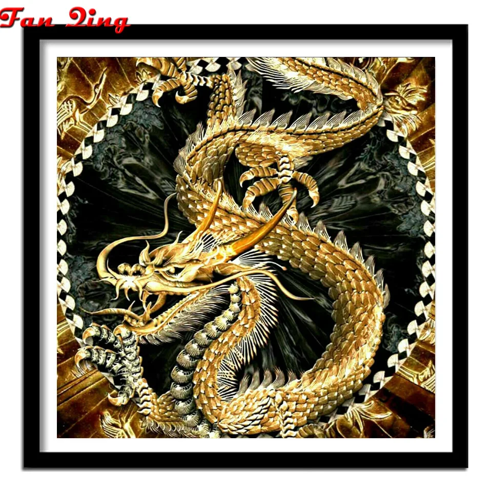 Новая Алмазная вышивка, китайская Настенная картина с золотым Драконом 5D, алмазная живопись сделай сам, квадратная круглая мозаика 3d Стразы