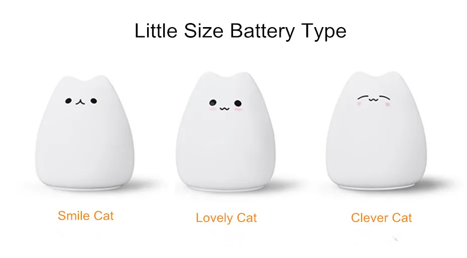 Особенности:-очаровательный внешний вид: форма предназначена для милые кошки. Благодаря мягкому освещению вы будете в хорошем настроении. -Лампа, меняющая цвет: 7 цветов s могут меняться, чтобы сформировать постепенно меняющийся цвет. Благодаря мягкой силиконовой поверхности светильник выглядит мягким и теплым. Создайте комфортную и расслабляющую атмосферу. -Долговечность: после полной зарядки Держите свет включенным до 15 часов. Быть вашим постоянным спутником на всю ночь. -Портативный размер: легко носить с собой и устанавливать на столе. -Размер: Маленький котик: 9 см * 9 см * 10,2 см Примечание: посылка входит: 1 светодиодный ночсветильник Примечание: 1. Для маленькой кошачьей лампы требуется батарейка AAA (не входит в посылку) 2. Чехол для ночника kitty изготовлен из моющегося силикона без бисфенола А, безвредный, мягкий и безвредный, безопасен для всех, включая младенцев. 3 светильник для детей, младенцев, детей, девушек и дам, отличный выбор для спальни. 4. Режим теплого белого светильник и режим дыхания 7 цветов, просто аккуратно нажмите на мягкую силиконовую поверхность, чтобы изменить режимы. 5. Лампа cat с пультом дистанционного управления выключится через 2 часа, маленькая лампа cat выключится через 1 час, и она начнет работать при нажатии переключателя. Маленькая лампа для кошки выключится через 1 час. И он начнет работать, когда похлопаете по нему или нажимаете переключатель.