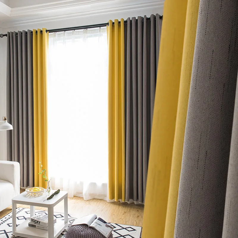 Льняная занавеска желтого цвета в скандинавском стиле для гостиной, спальни, окон, готовая серая занавеска