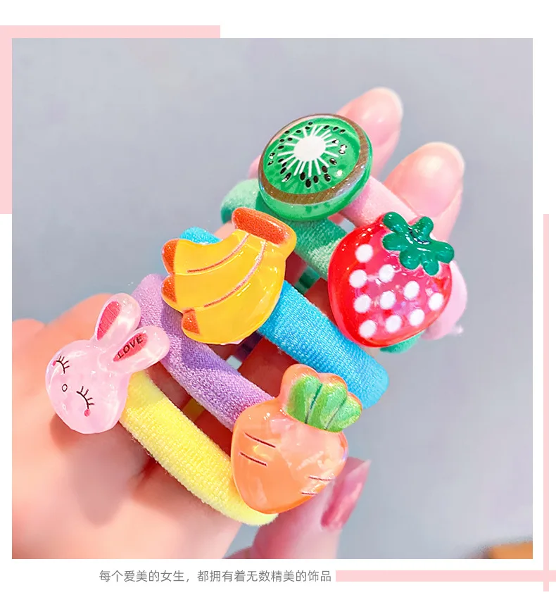 10 шт.компл. Милая резинка для волос для девочек Радужная резинка для волос с изображением героев мультфильмов фруктов цветов эластичные аксессуары для волос