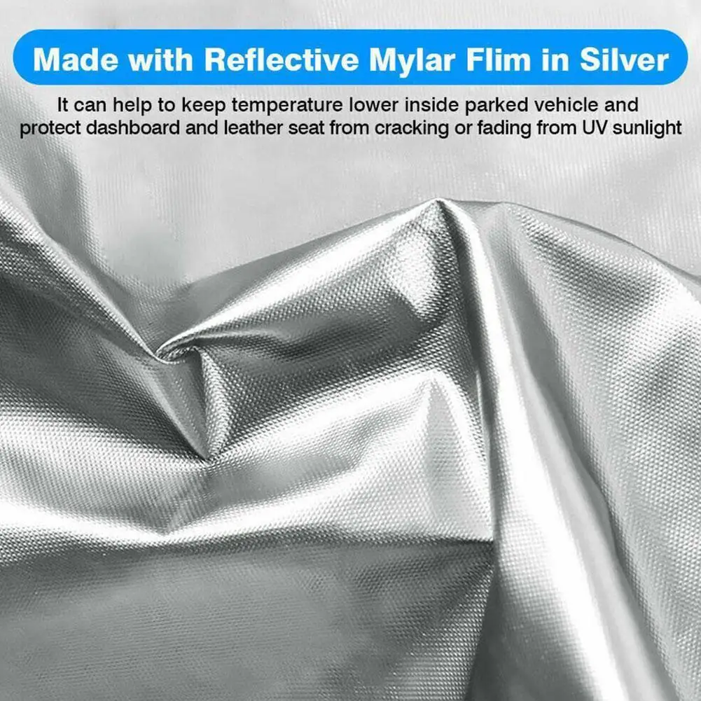 Автомобильный солнцезащитный козырек, чехол на лобовое стекло автомобиля, солнцезащитный козырек от ультрафиолета, переднее стекло, предотвращающее падение, износостойкий и складной зонтВещь:1. Материал солнцезащитного козырька мягкий и износостойкий, не царапает ветровое стекло2. Титано-серебристое клеевое покрытие может отражать солнечный свет и блокировать ультрафиолетовые лучи для поддержания внутренней температуры.3. Солнцезащитный козырек зонта имеет десять стальных ребер, что обеспечивает хорошую поддержку и предотвращает падение. Матовая ручка обеспечит приятное прикосновение.4. Подходит для различных ситуаций, таких как парковка, защита от солнца и дождя5. Складная конструкция, удобство хранения и транспортировки.Спецификация:Материал: Серебряная лентаРазмер: Большой: 145*80 см, маленький: 125*65 смПрименимые модели: автомобили, вездеходы, коммерческие транспортные средстваПосылка входит: 1 * зонт от солнца