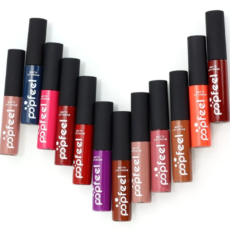 , Фирменная губная помада, макияж, Водонепроницаемый batom оттенок блеск для губ красно-коричневый открытые продолжительный Popfeel бренд жидкая матовая помада, макияж