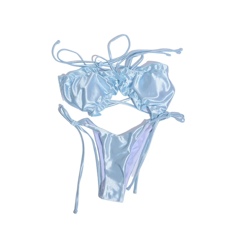 2021 Блестящий треугольный комплект бикини с оборками, купальник пуш-ап, женский купальный костюм, стринги с низкой талией, сексуальный купальный костюм