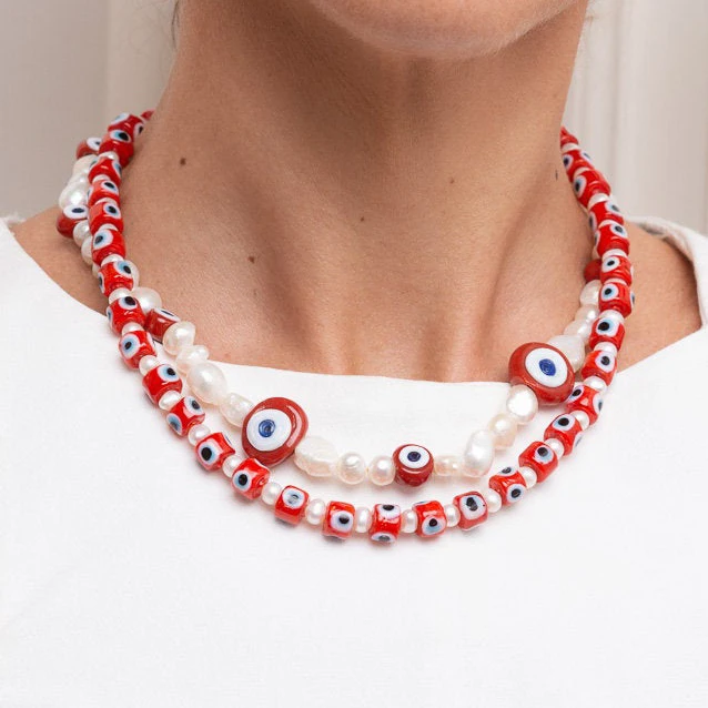 Летний тренд Бохо Жемчуг Бусы Красный муранское стекло сглаза бисером пресноводный жемчуг эмалированные Чокер ожерелья для женщин ювелирные изделия