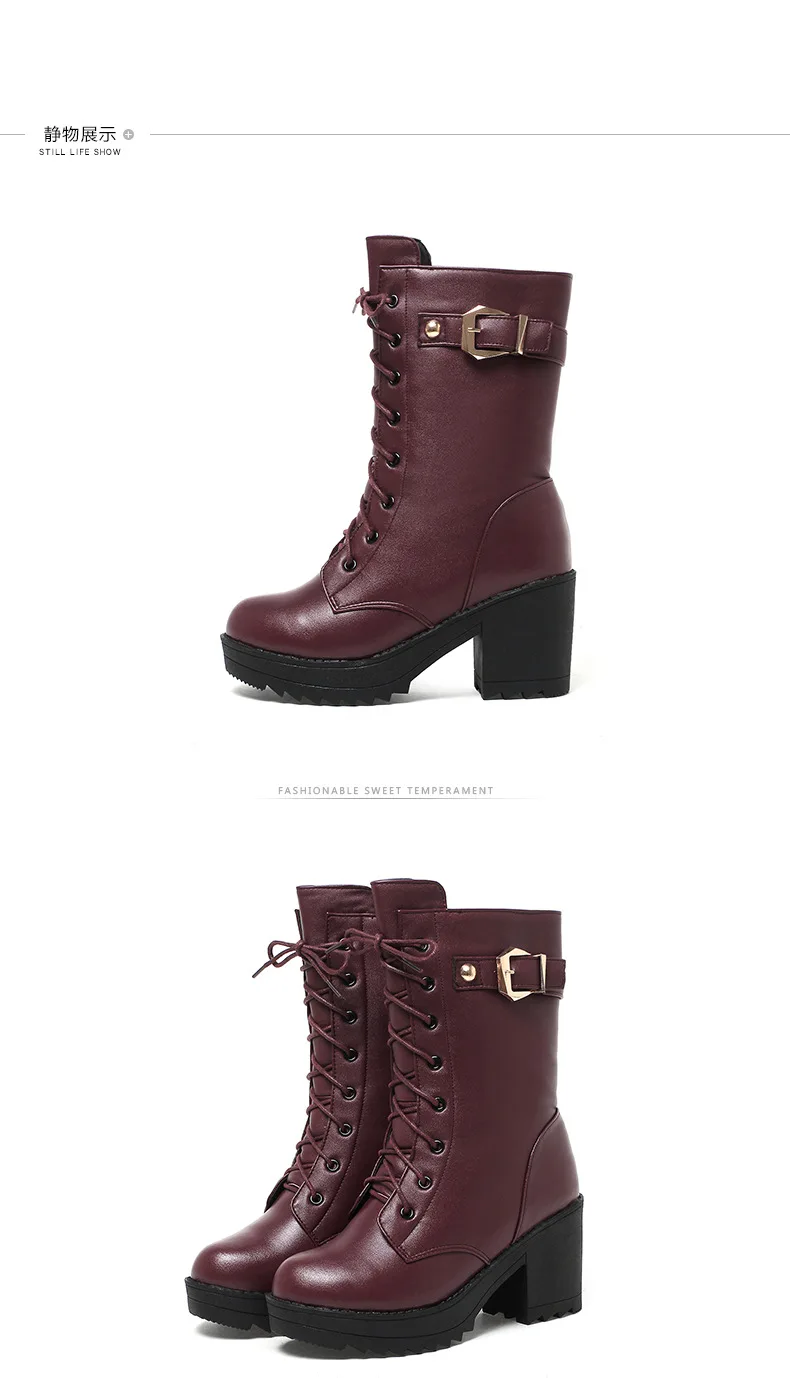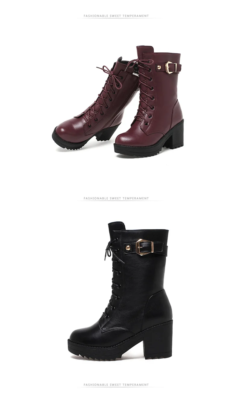 Fujinтеплые зимние женские ботильоны из натуральной коровьей кожи на массивном каблуке и платформе; Мотоциклетные ботинки на шнуровке; Обувь
