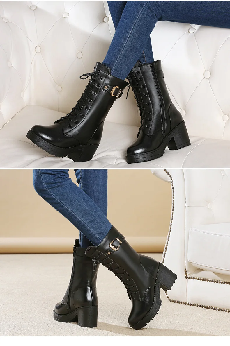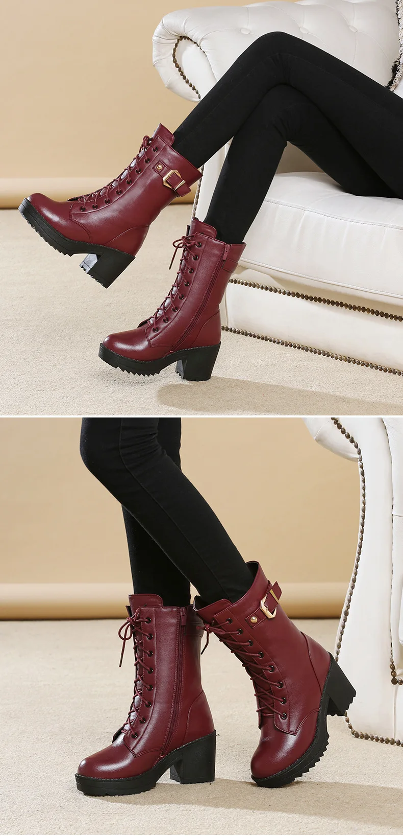 For SeasonFor Winter Autumn Women Boots Genuine Leather