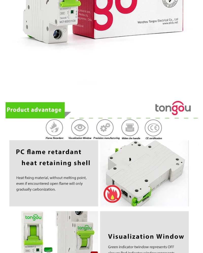 Солнечная система TONGOU DC MCB, подходит для номинального напряжения 250 В или менее, для номинального тока 63 А или менее.