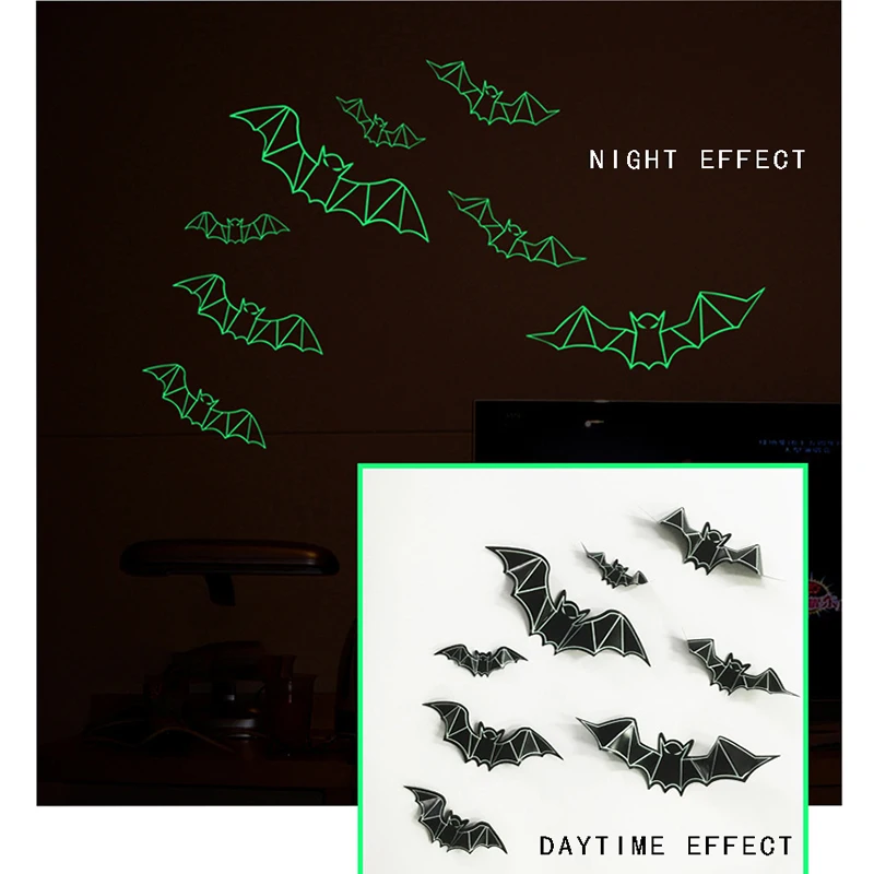 12 шт. в упаковке, 3D летучей мыши светящиеся наклейки на стены для празднования Хэллоуина украшения для детской спальни декор для потолка наклейка DIY крючок номер стикер принадлежности