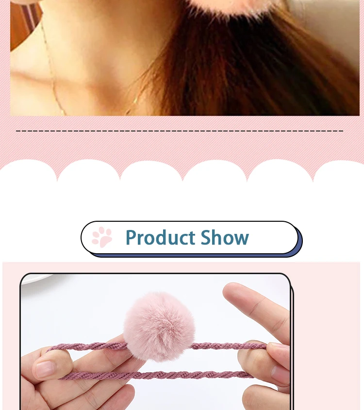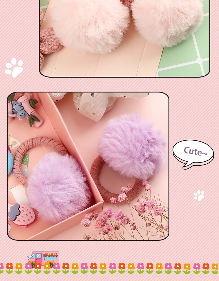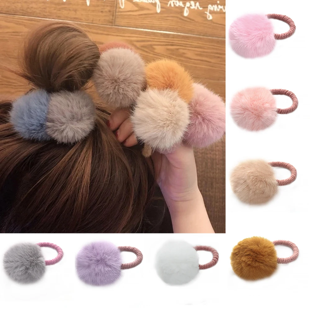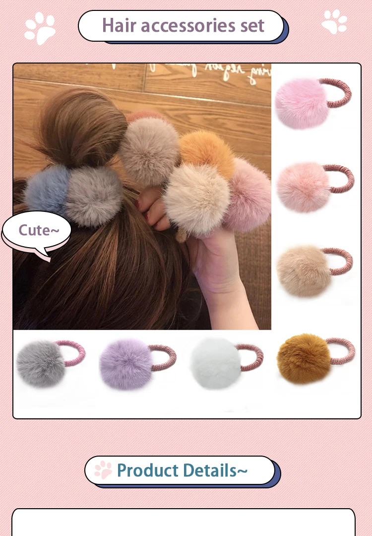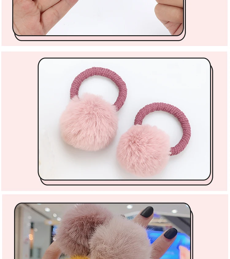 Резинка для волос с меховым шариком и резинкой, эластичное плюшевое украшение для хвоста ручной работы, милые розовые аксессуары для волос для девочек