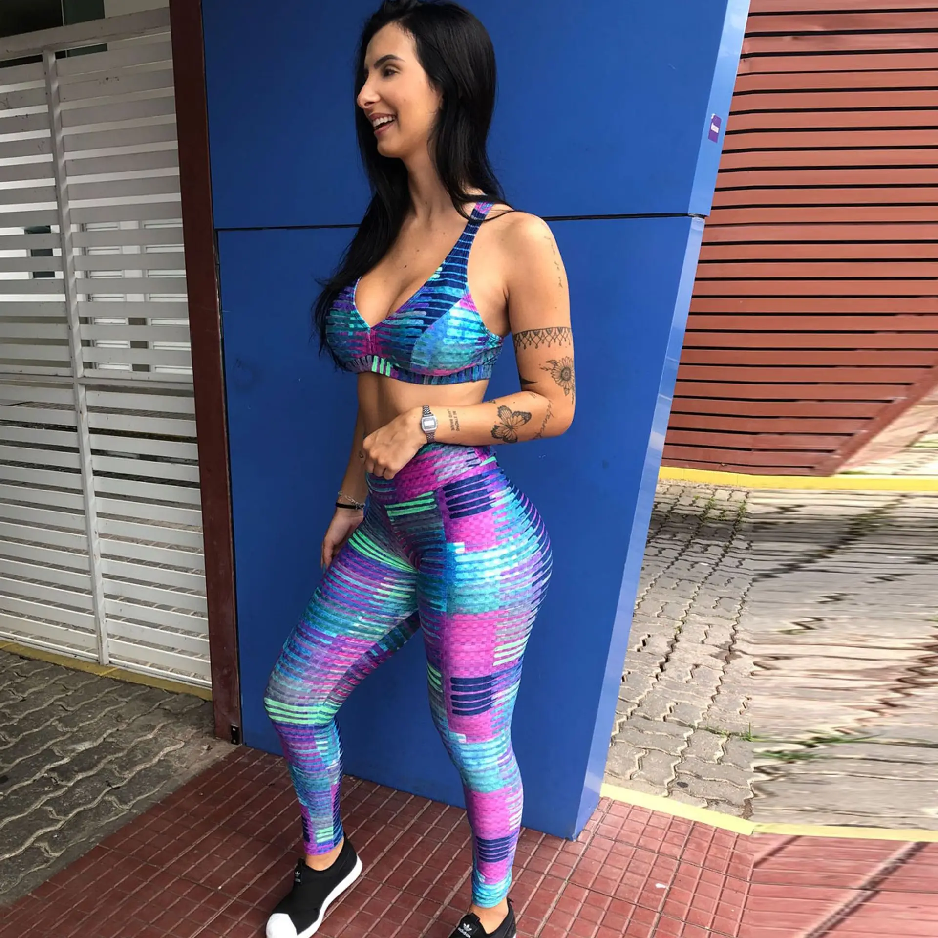 Женские эластичные леггинсы с эффектом пуш-ап, синие и фиолетовые б...