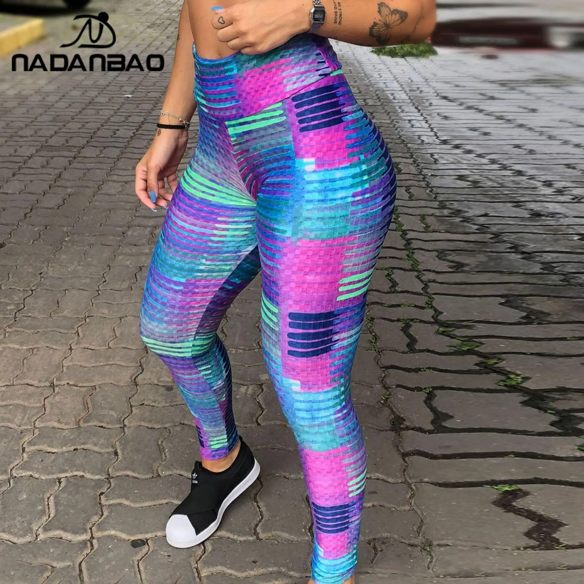 NANDABAO модные абстрактные тренировочные женские леггинсы с высокой эластичной талией фитнес-Леггинсы сексуальные эластичные брюки до щиколотки бедра пуш-ап леггинсы