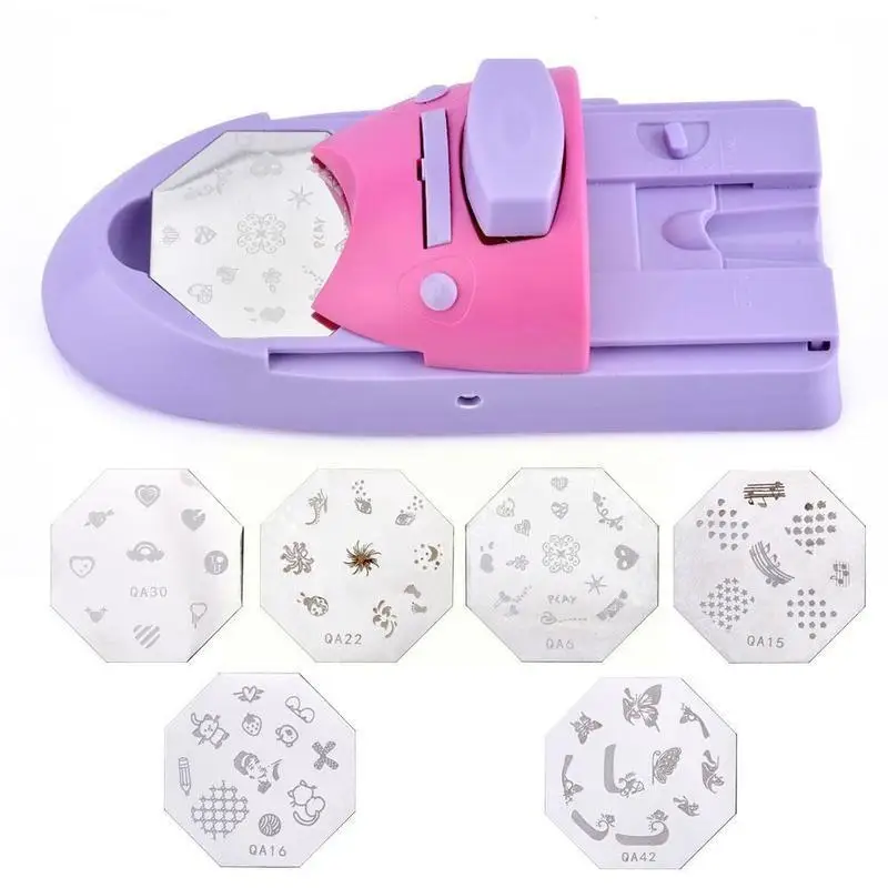Diy 3d Ручная печатная машина искусства ногтя лак для ногтей печати художник искусство ногтя набора пресс-форм, Stamp Plate Инструмент Принтер металла H4T7