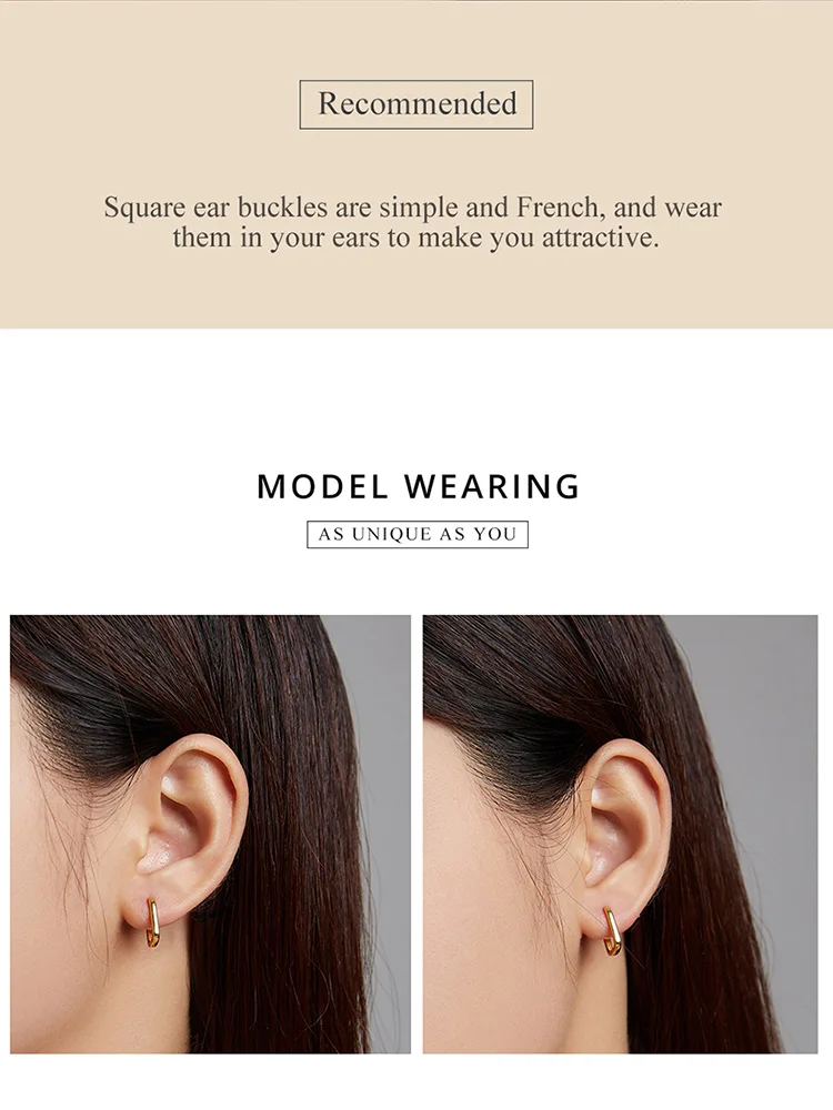 Bamoer Позолоченные квадратные серьги с застежкой из стерлингового серебра 925 пробы, Классические французские серьги для женщин, вечерние свадебные ювелирные украшения