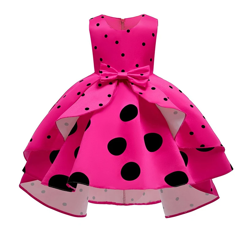 Летнее платье в горошек для девочек бальное платье без рукавов с бантом милые детские платья принцессы для От 2 до 10 лет, детская одежда