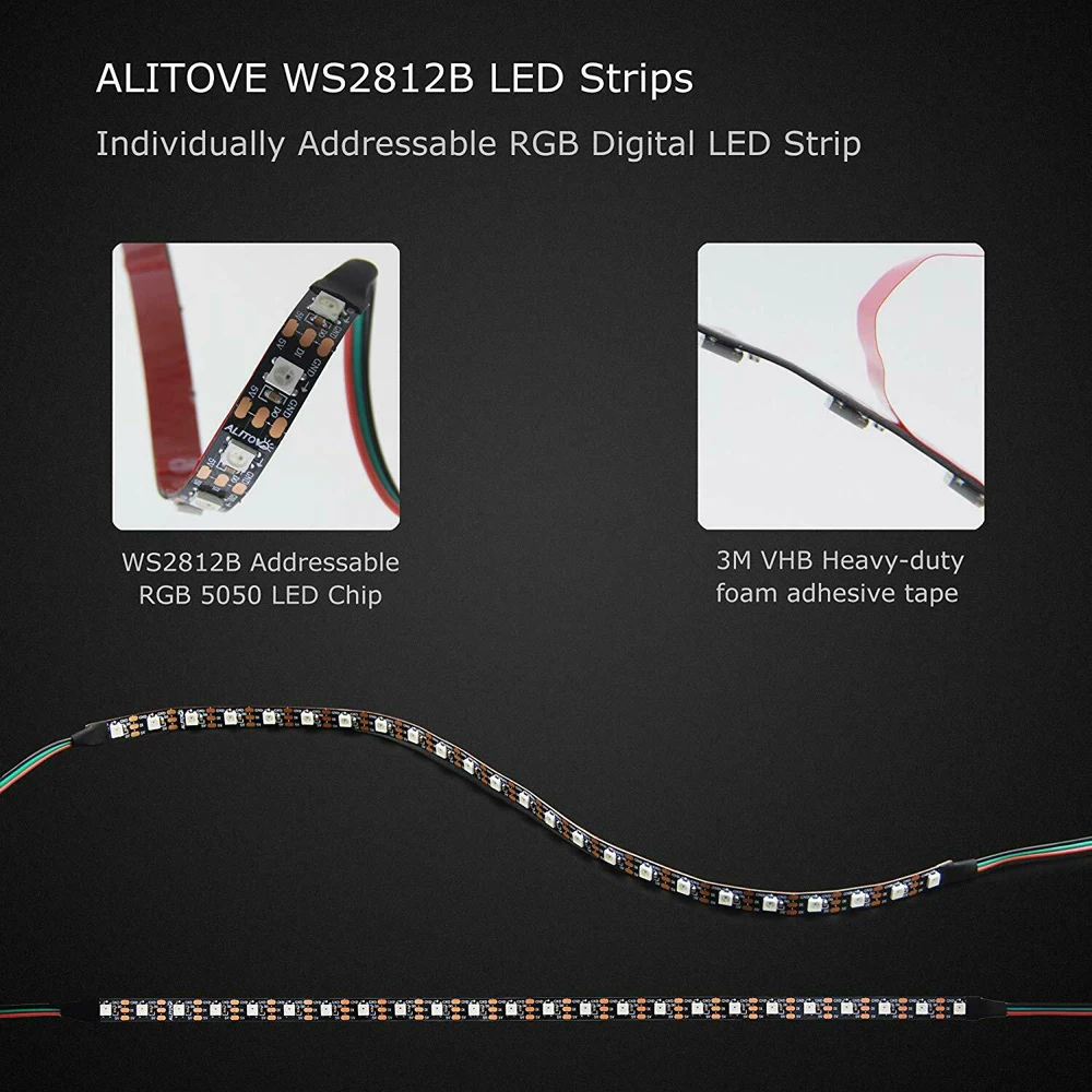 Светильник источник: 5050 RGB светодиодныйIC Модель: WS2812bСветодиодный Кол-во: 30 светодиодный s 1 м/60 Светодиодный s 1 мУгол обзора: 120 °Напряжение: 5 В постоянного токаВодонепроницаемый: IP30 не водонепроницаемый/IP65 водонепроницаемыйЦвет платы FPCB: черныйРабочая среда: от-40 ℃ до + 80 ℃Определение штифта:+ 5V, D, N/A, GND;Красный провод: 5 В +/зеленый провод: данные/белый провод: GND