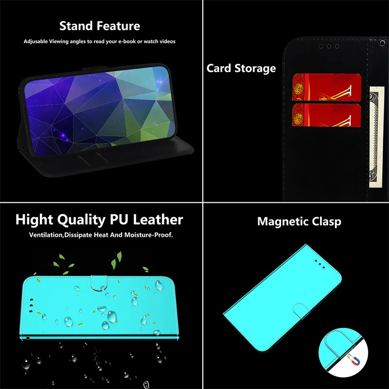 Зеркальный кожаный чехол-книжка для MOTOROLA moto E7 G9 Play 5G Edge Plus One Fusion Fast Gradient, магнитный чехол-кошелек с подставкой