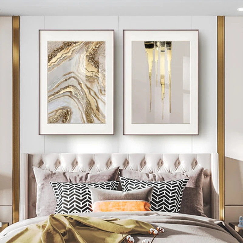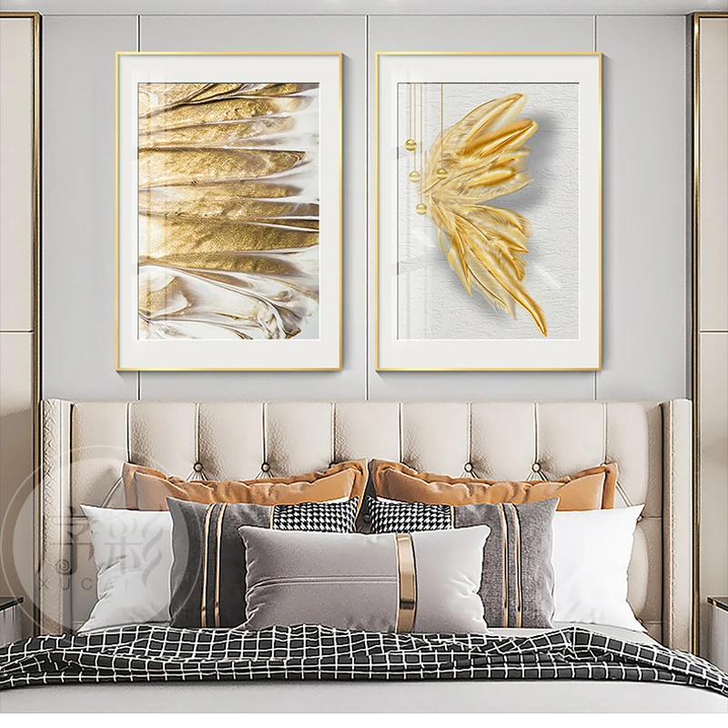 Современный в виде золотых перьев лист настенное украшение в виде бабочки Художественная печать холст картина плакат абстрактный Золотой Фольга линия печать рисунка Декор в гостиную